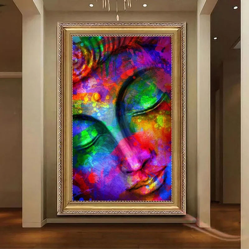 Картина маслом с Буддой, цветные холщовые плакаты и принты на стену для гостиной, входа, спальни, декоративные картины