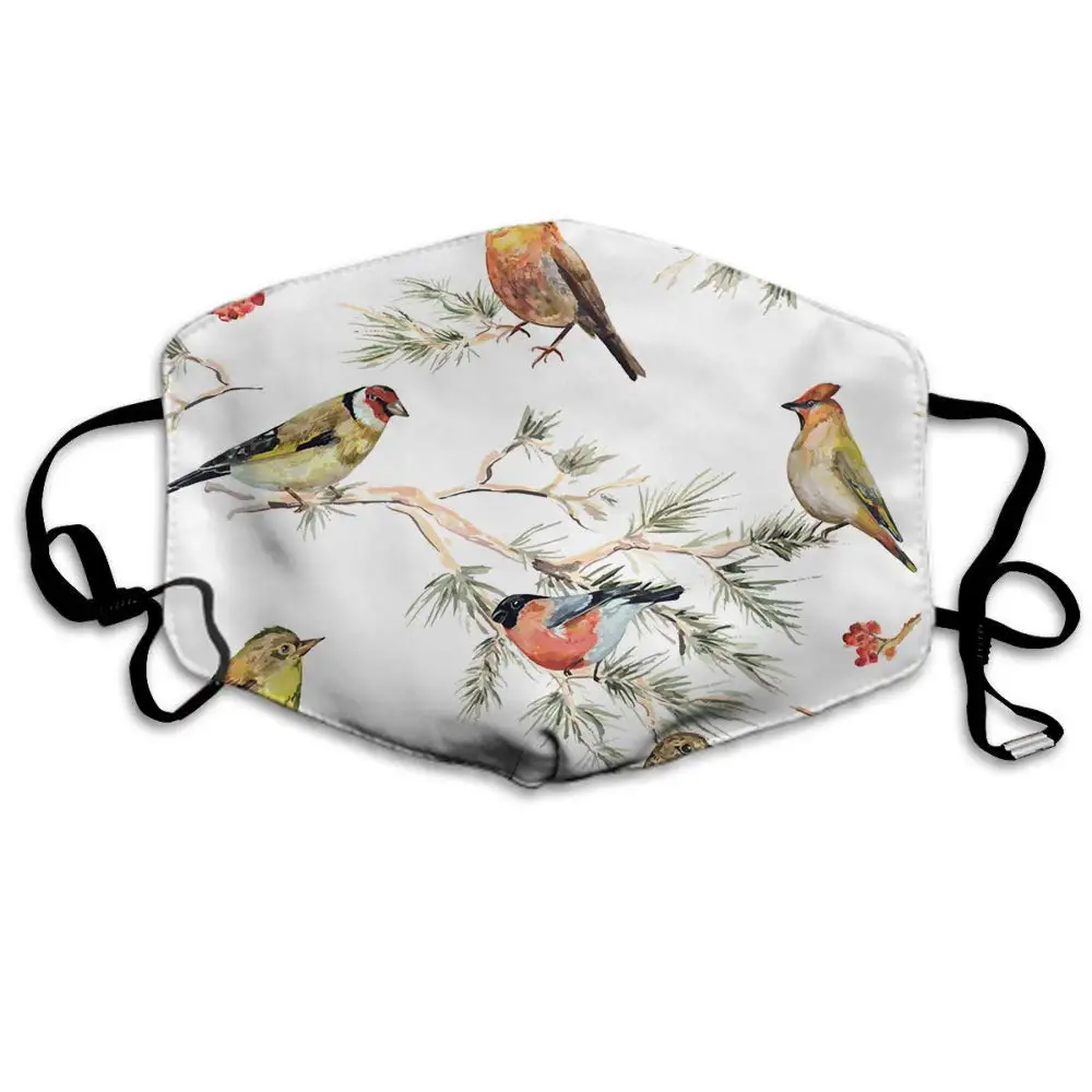 Маска Swono с птицами, винтажная маска для лица из полиэстера с рисунком акварельных лесов и птиц, многоразовая моющаяся маска для лица против пыли