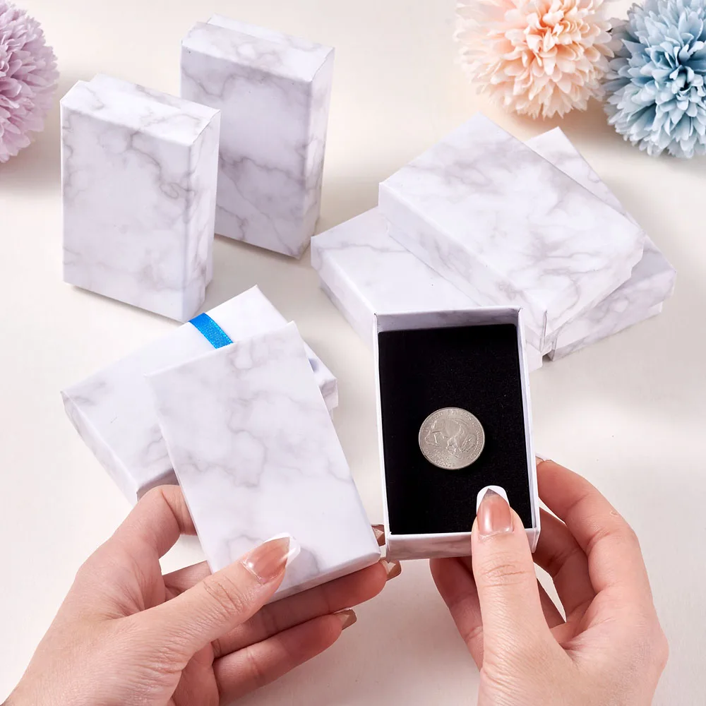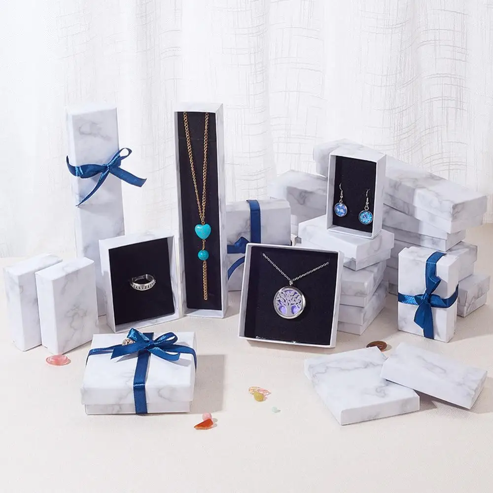 Pandahall 24 шт. бумажные картонные коробки для ювелирных изделий, Подарочные ожерелья, обручальные кольца, прямоугольная белая коробка