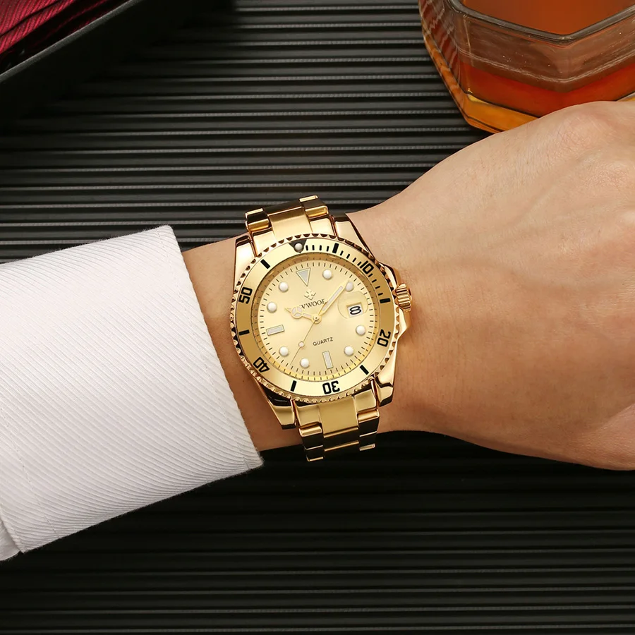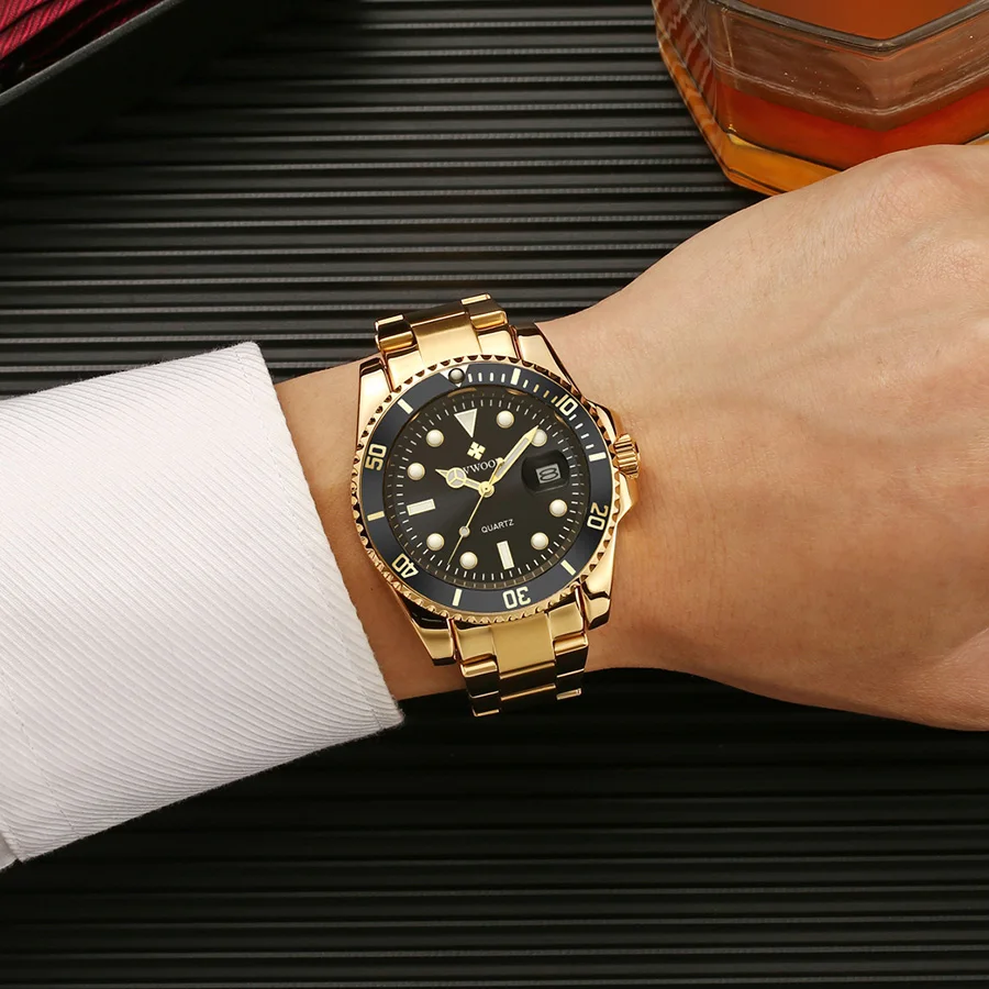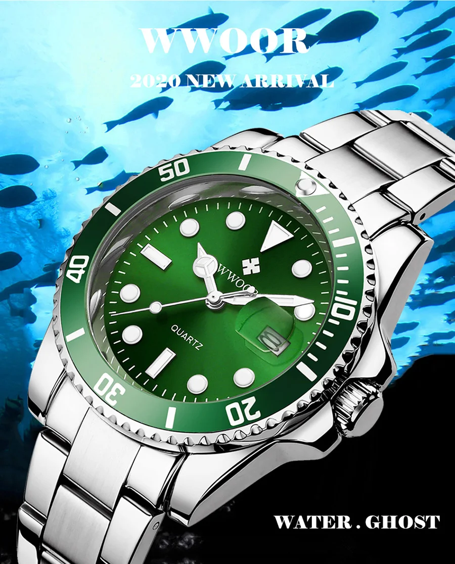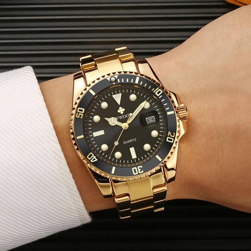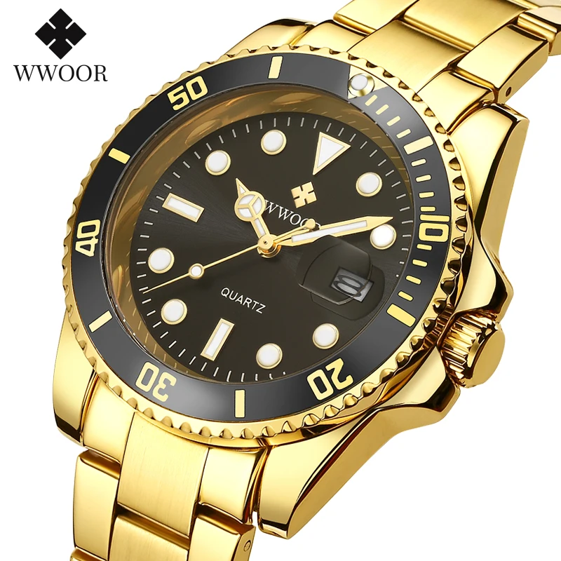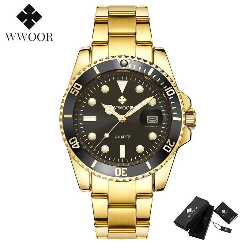 Мужские часы WWOOR 2021, Роскошные Аналоговые кварцевые часы для мужчин, золотые, черные, спортивные, для дайвинга часы, водонепроницаемые часы из нержавеющей стали с автоматической датой