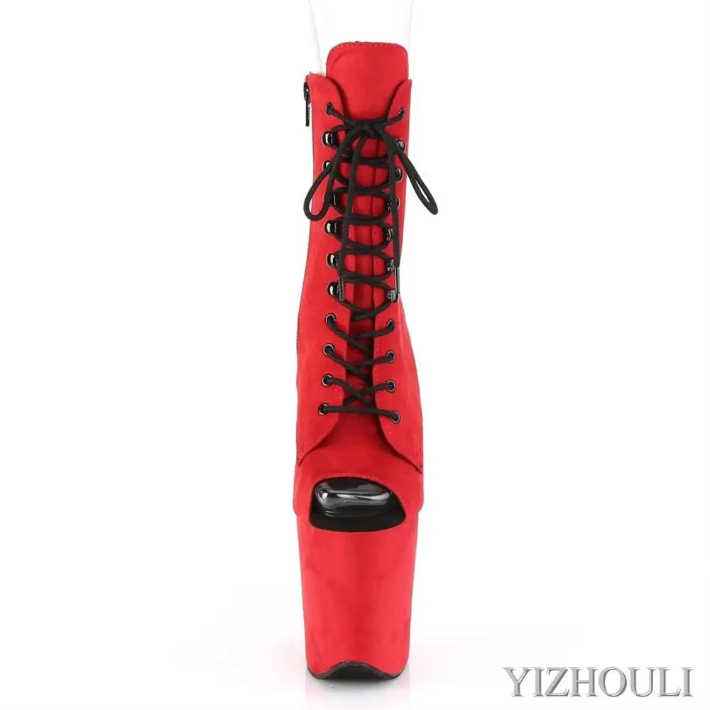 Замшевые Ботинки на каблуке 20 см, модель 8 дюймов, на шпильке, с открытым носком и застежкой-молнией, ботильоны Ночной клуб Танцы у шеста