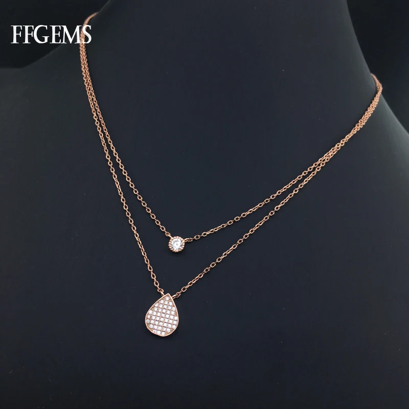FFGems, Настоящее серебро 925 пробы, ожерелье с подвеской из стерлингового циркония, элегантное, найти ювелирные изделия для женщин, вечерние, свадебные подарки Основной драгоценный камень: циркон создан алмаз Длина: 45 см Вес: 3,8 г