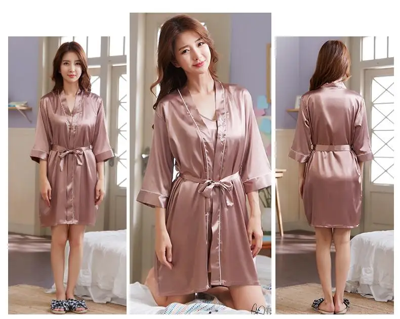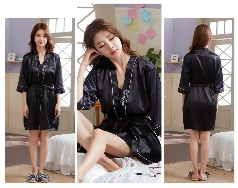 Халат женский атласный, мягкая Пижама для невесты и подружки невесты, домашняя одежда, комплект из 2 предметов, шелковая Интимная Ночная рубашка, ночное белье, лето