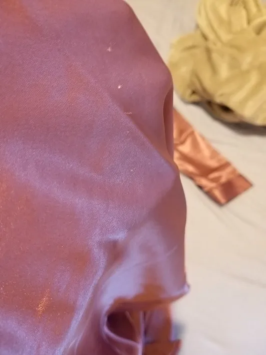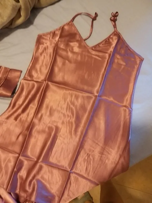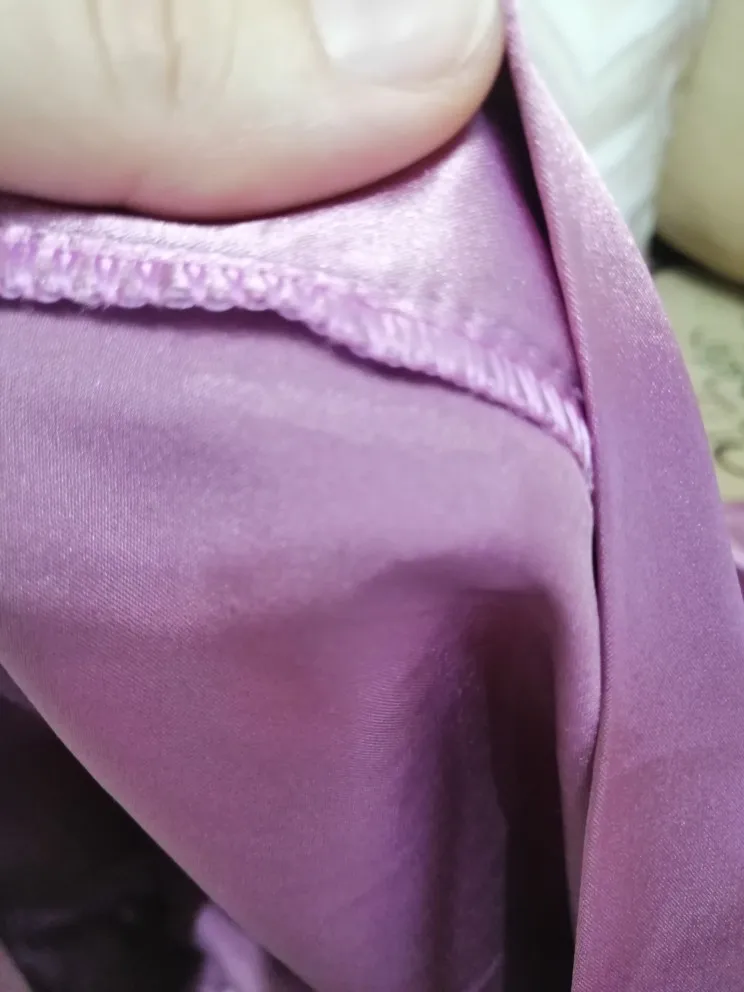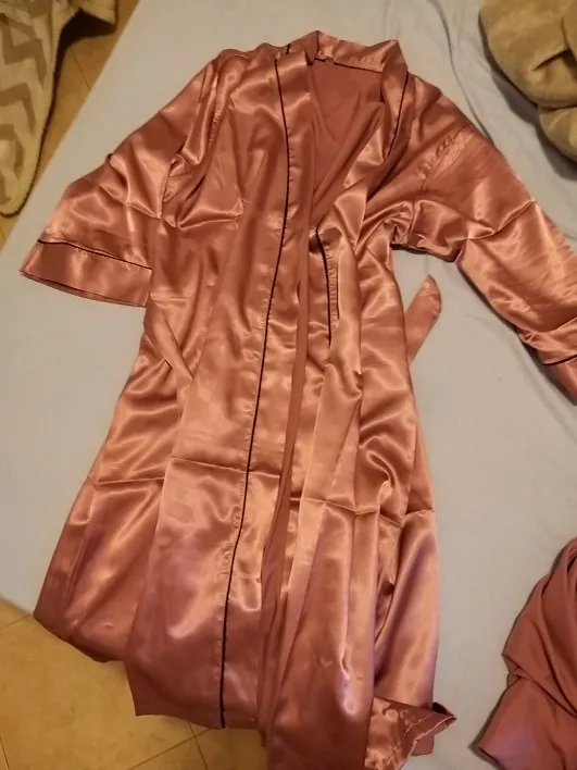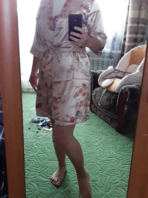 К сожаленью покупка разочаровала. Материал - чистая синтетика, а не атлас, как было сказано в описании. Ткань сильно электризуется, кроме этого имеет дефекты. На халате торчат нитки из ткани. Халат короткий и полностью не запахивается по модели, что тоже не понравилось