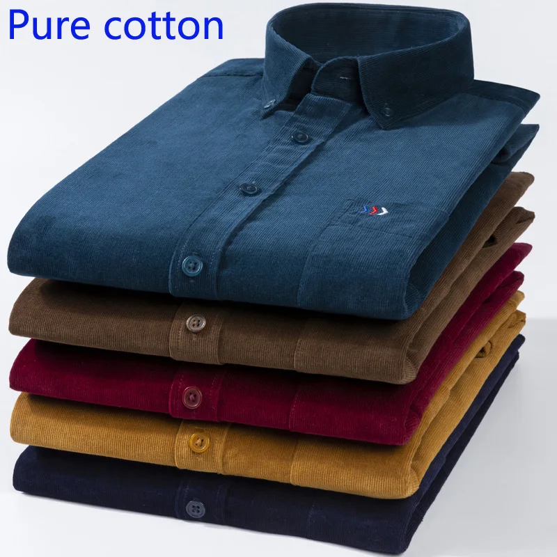 Новая весенне-осенняя Вельветовая Мужская рубашка из чистого хлопка с длинным рукавом в повседневном стиле, свободные большие повседневные рубашки, однобортная рубашка, Женская