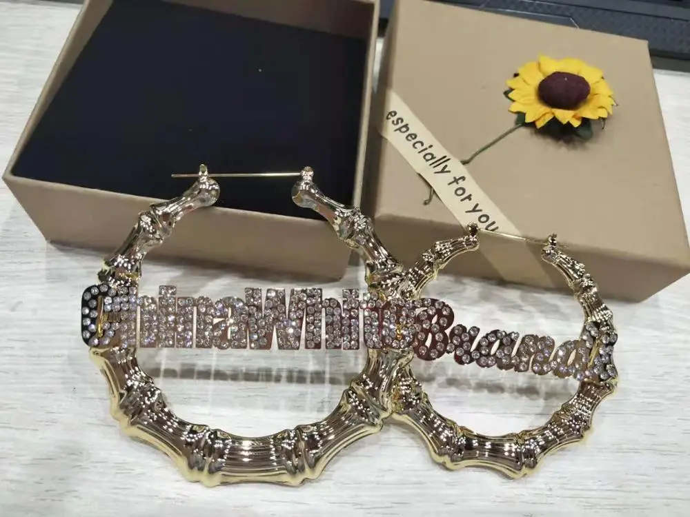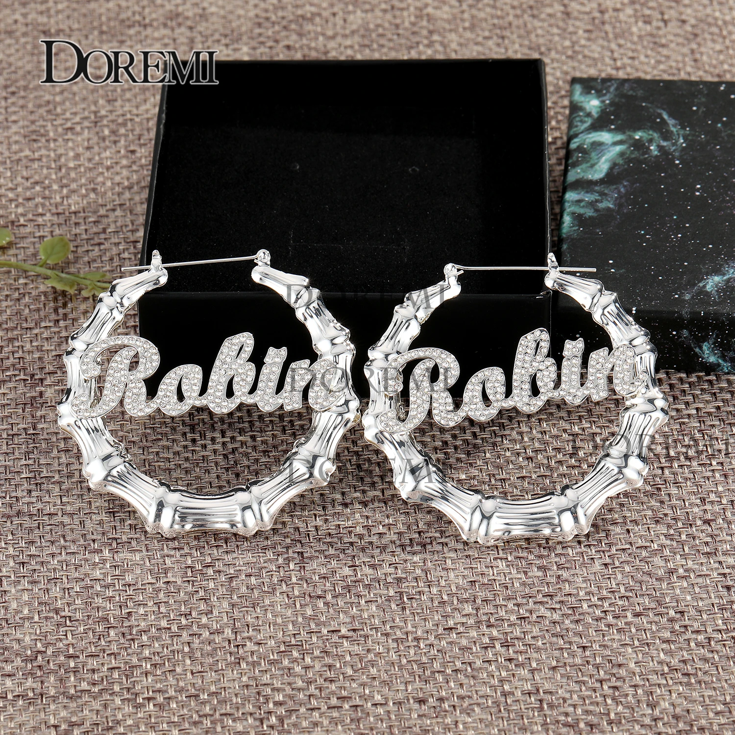 DOREMI Bling именные Бамбуковые серьги на заказ трапециевидные кольца бамбуковые именные серьги буквы большие персонализированные именные серьги для женщин подарок