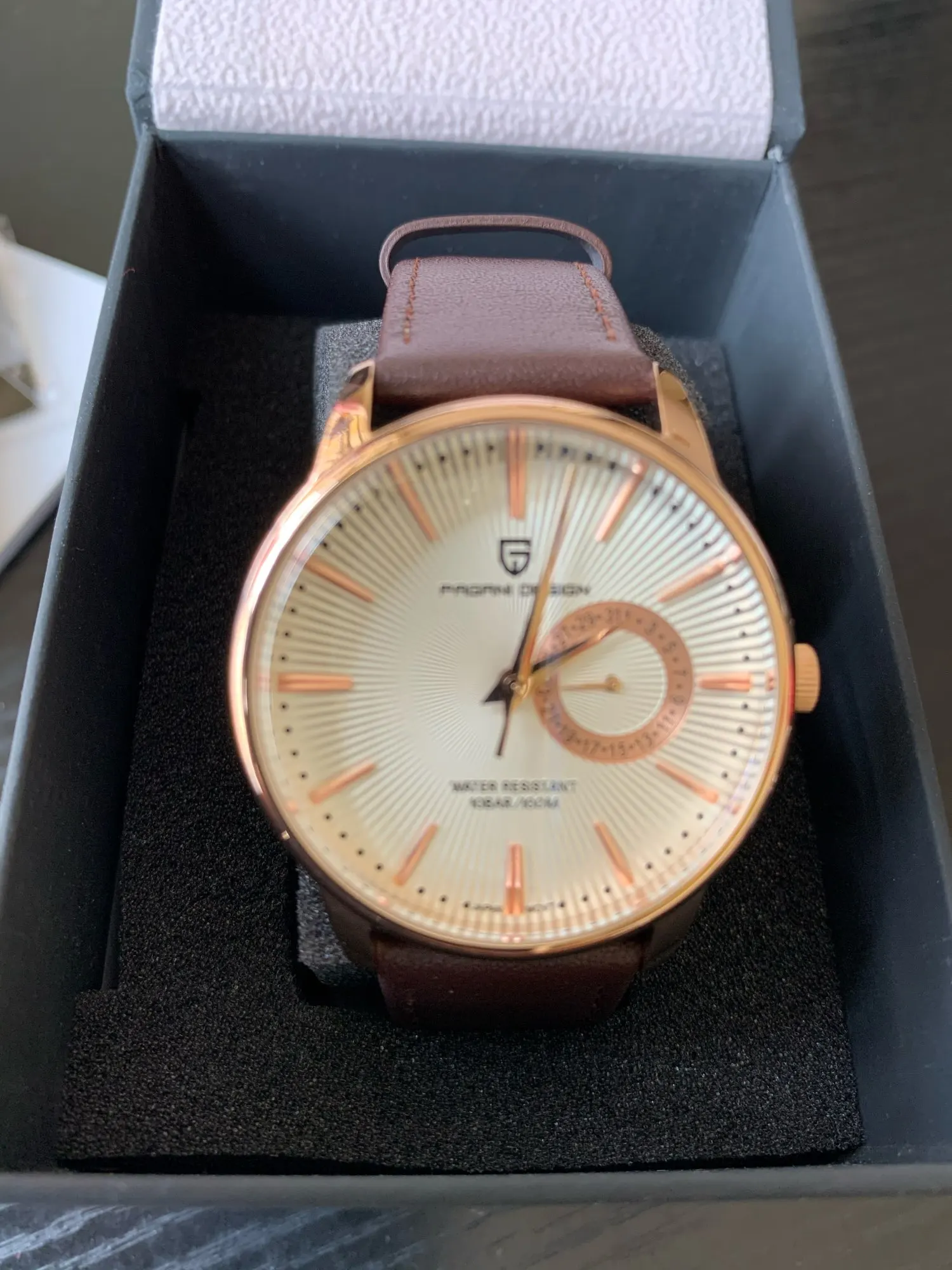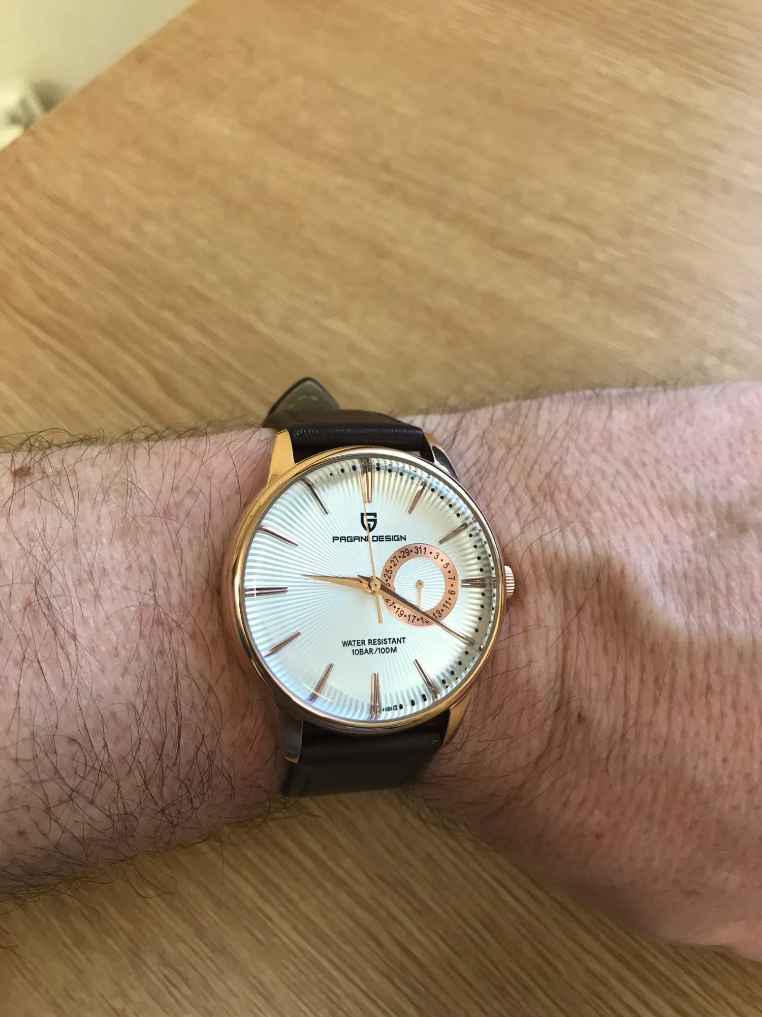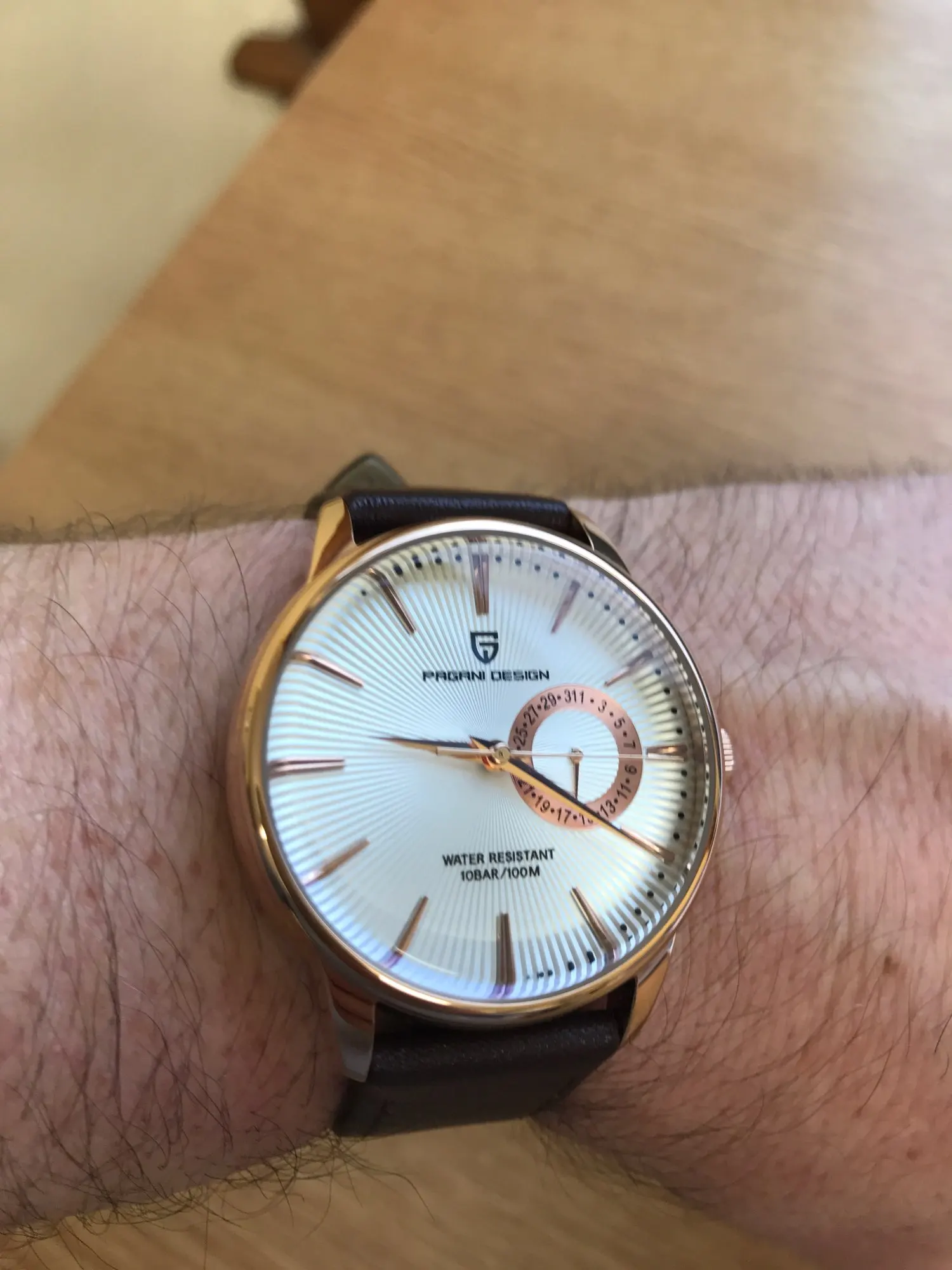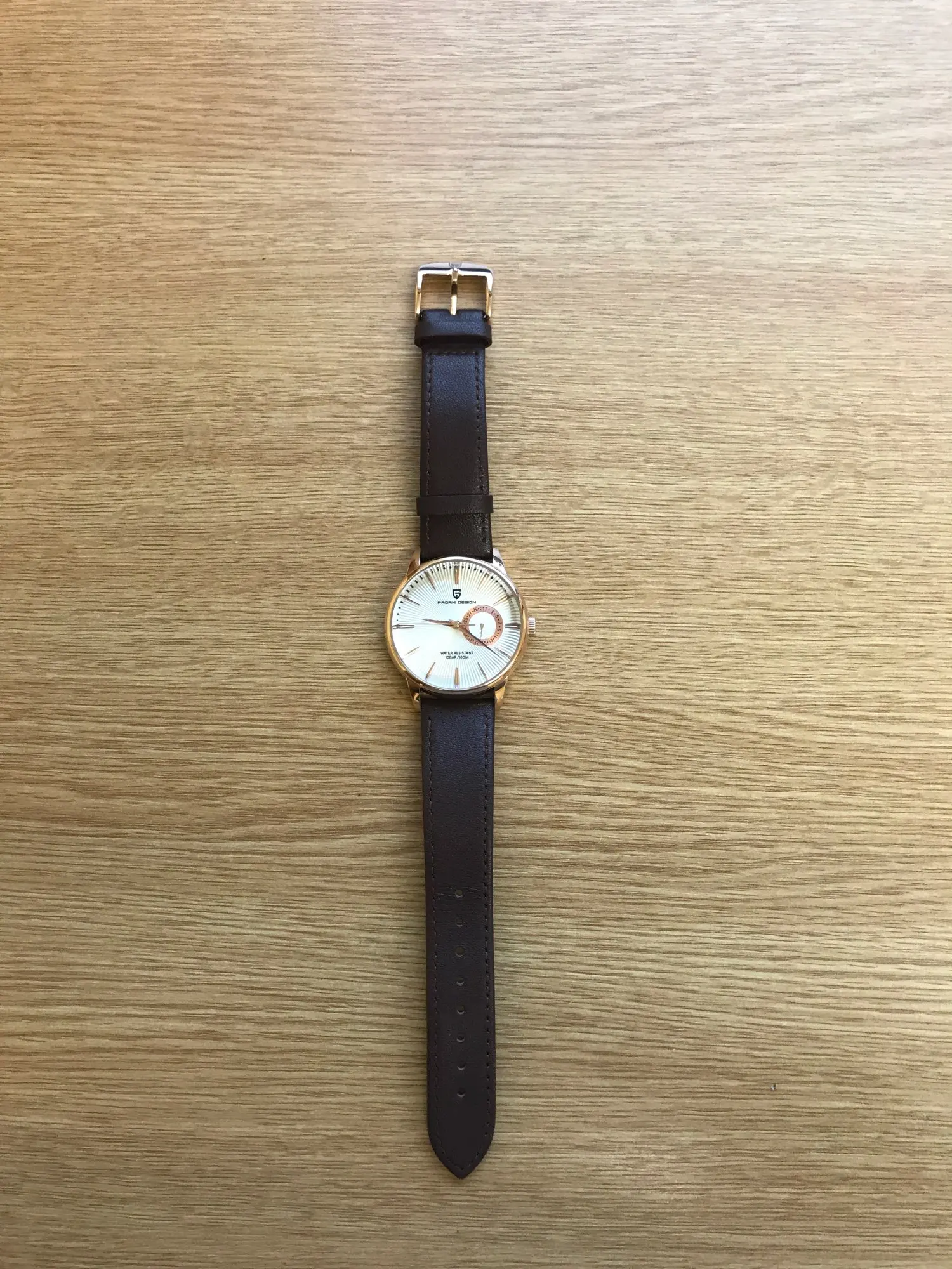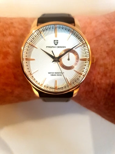 Отличные маленькие часы по цене. Хороший циферблат sunburst, хорошо одевается и хорошо держит время. Типичный Pagani-множество спецификаций для небольших денег. Прибыл в Великобританию в течение десяти дней, очень рад.