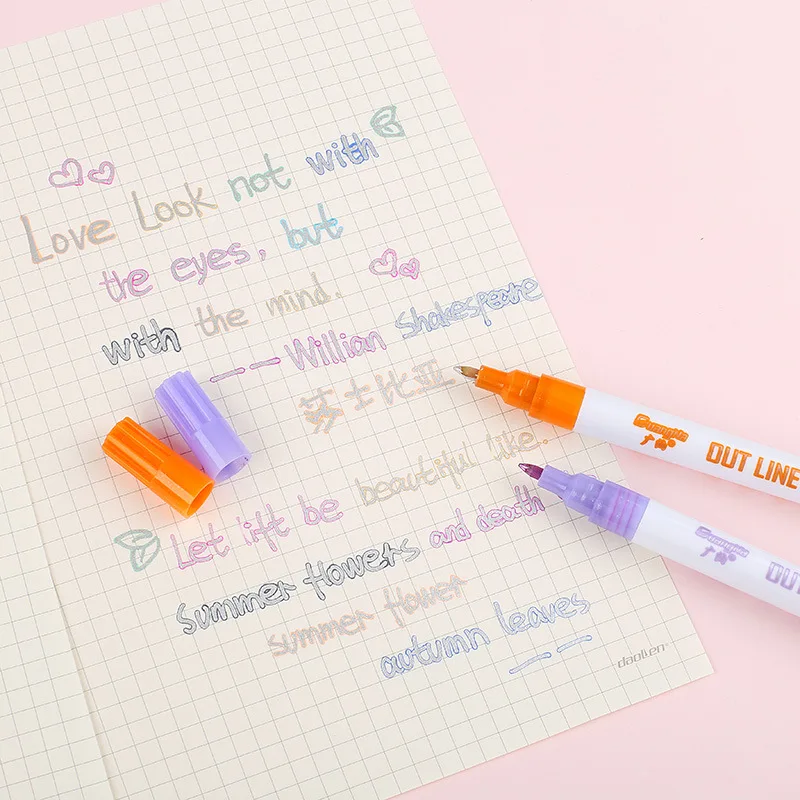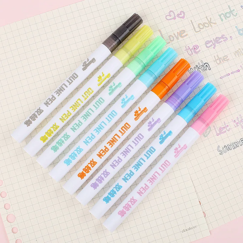 8 расцветок подарочная карта письма и рисования двойная линия контурная ручка двухлинейный цветная ручка маркер, фломастер, яркие цвета, живопись