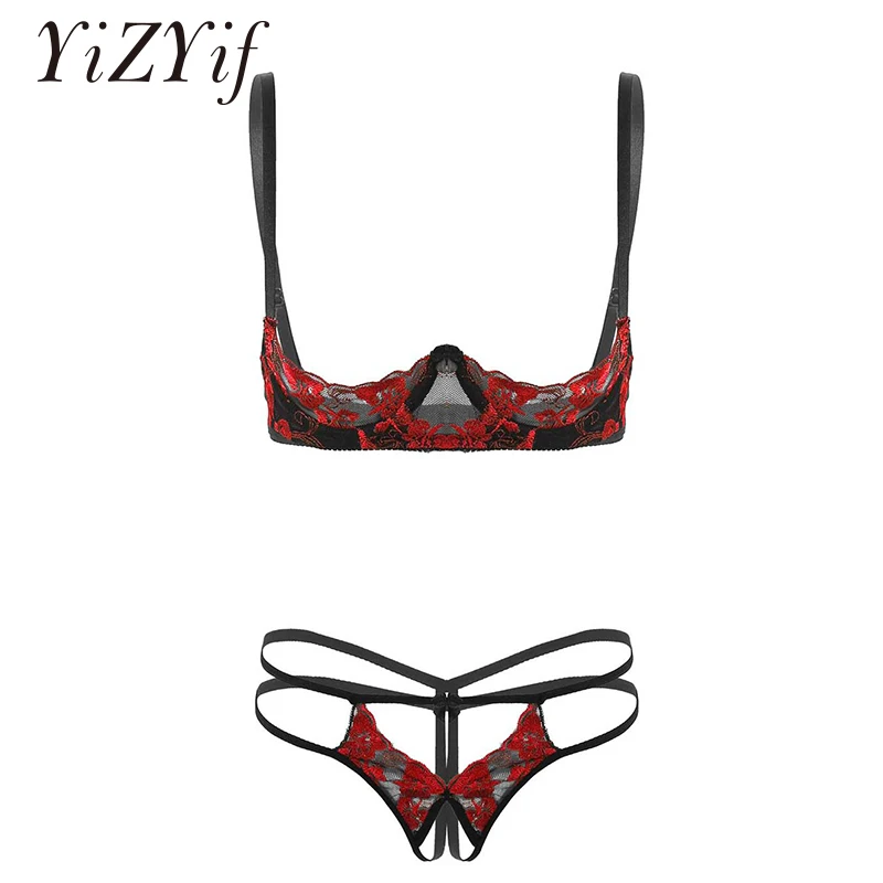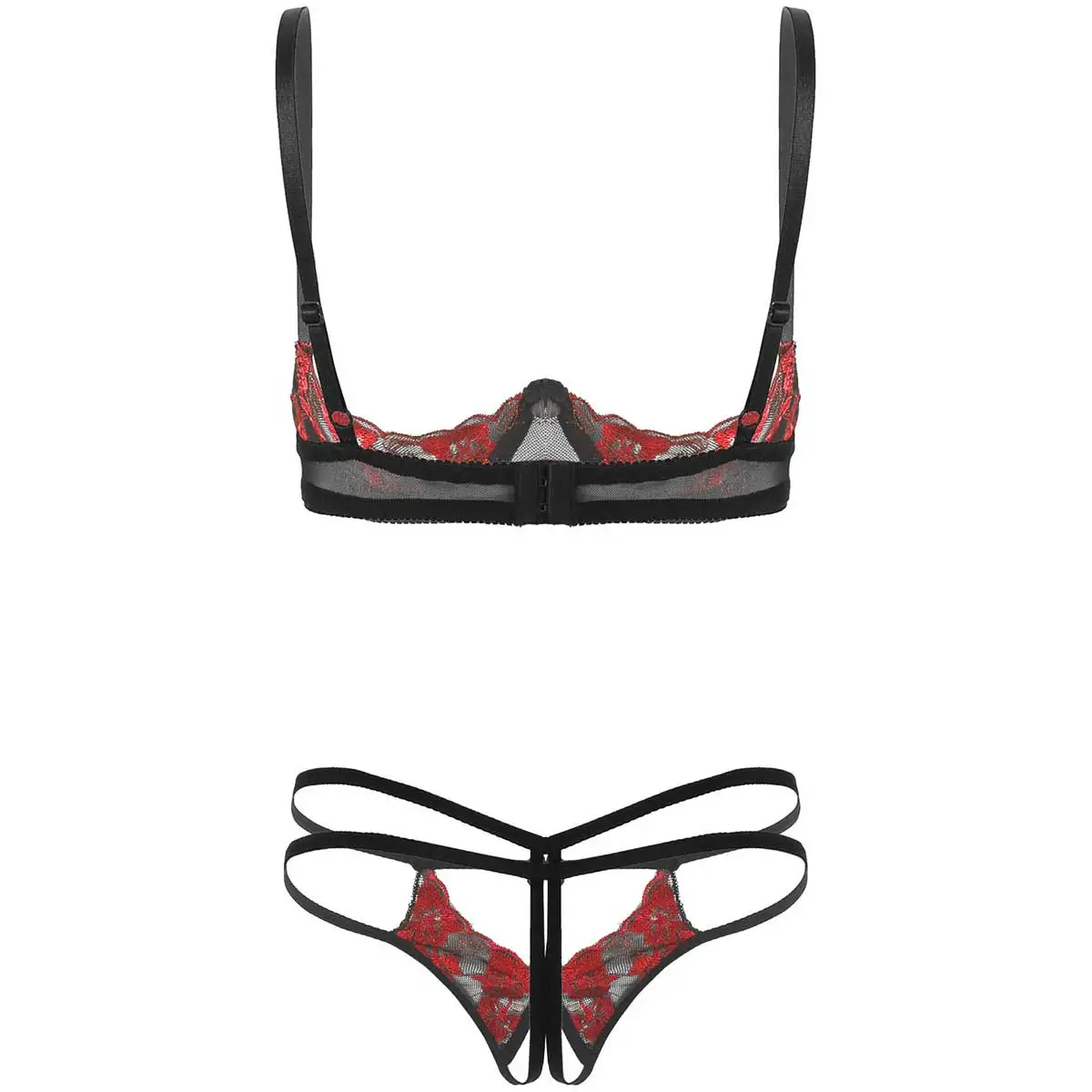 Эротический красный кружевной бюстгальтер с вышивкой, трусики, комплект нижнего белья, женское нижнее белье, бюстгальтер и трусики с открытой промежностью, стринги, стринги