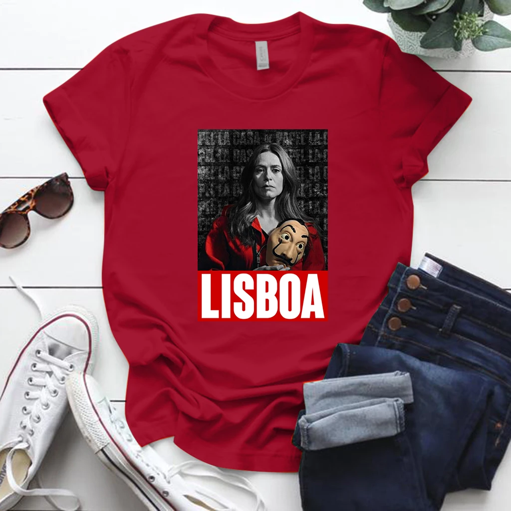 Женская футболка размера плюс с принтом Lisboa La Casa De Papel, футболка с коротким рукавом, Повседневная летняя забавная футболка Ropa De Verano Mujer