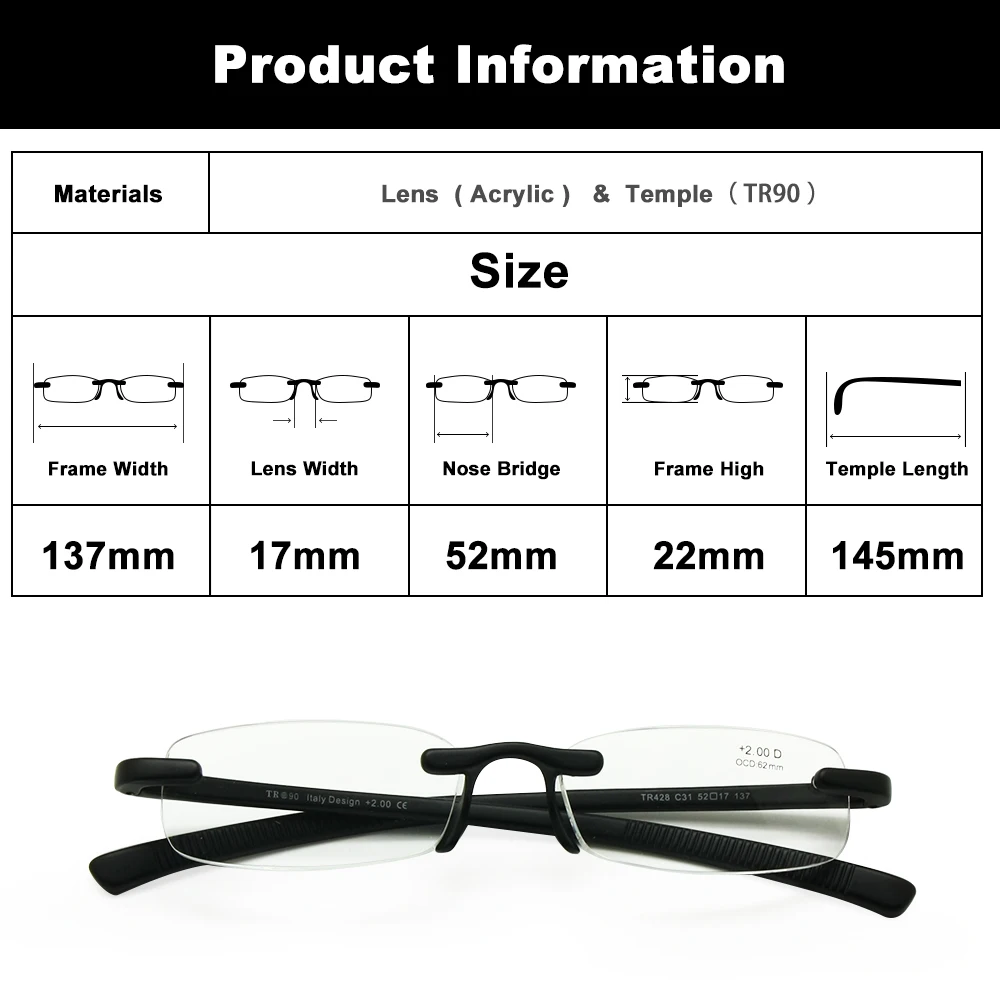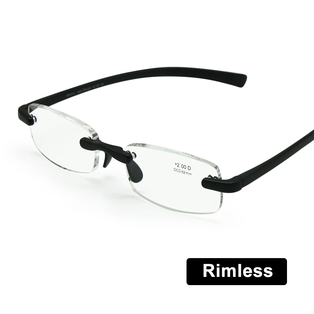 Очки для чтения без оправы, гибкие очки для пресбиопии, ульсветильник, с дужками TR90, сгибаемые, карманные, для мужчин и женщин