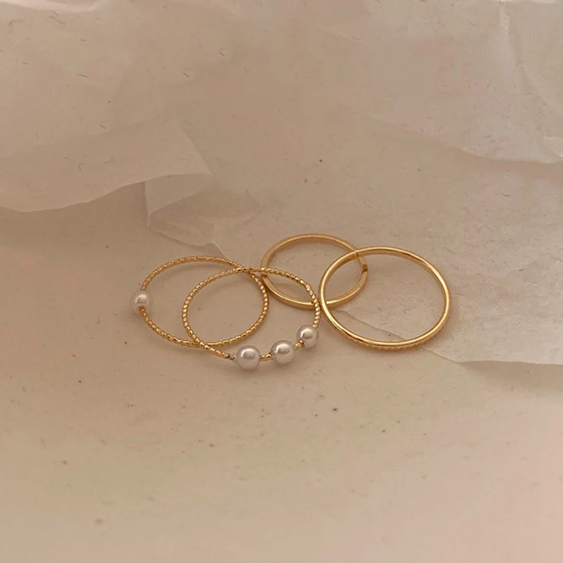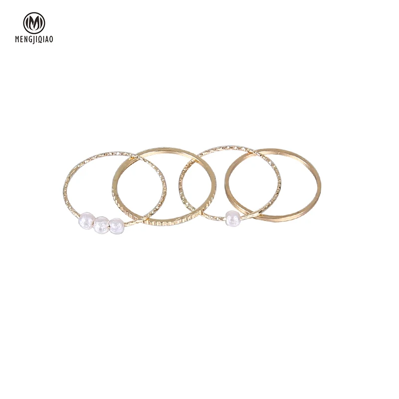 MENGJIQIAO 4 шт.компл. винтажные элегантные жемчужные кольца на костяшки рук для женщин Модные металлические кольца для пальцев аксессуары ювелирные изделия