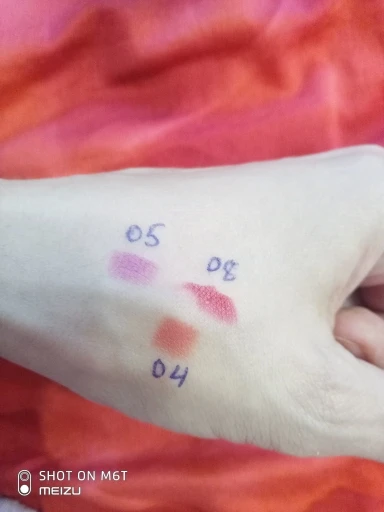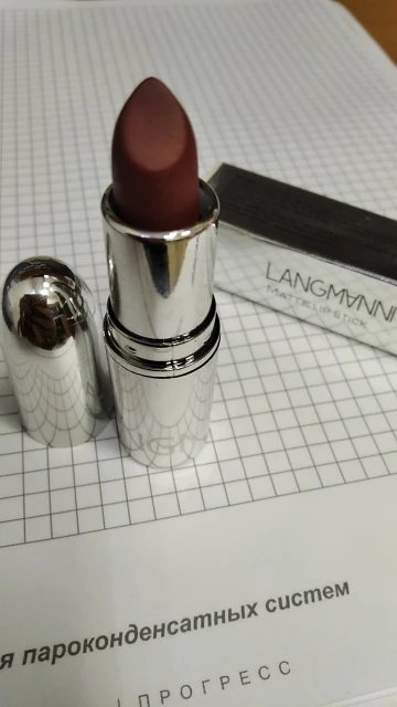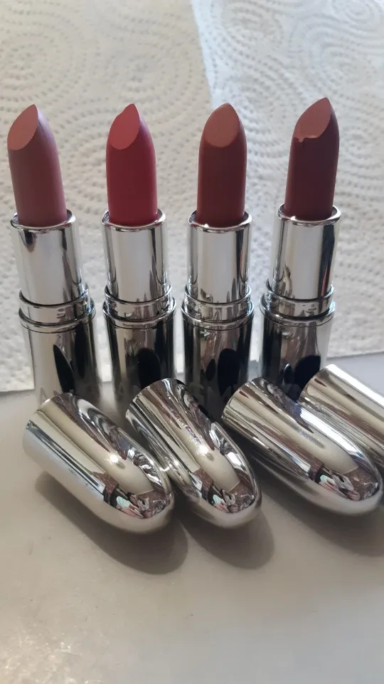Качество помады хорошее, матовая, ложится ровно, не "скатывается". Тон 04 ближе к красному цвету, а на фото цвет помады темно розовый с коричневым оттенком. Доставка около двух месяцев, упаковка без повреждений.