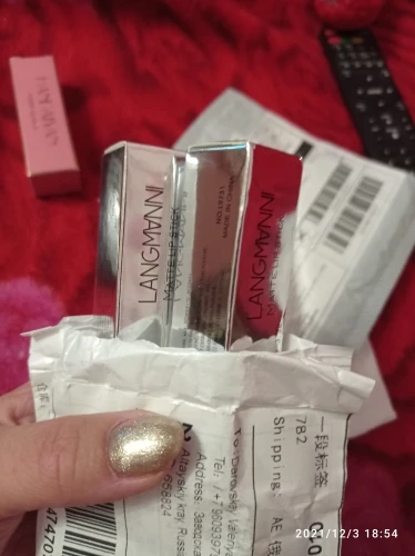 Шла посылка больше двух месяцев. С продавцом но общалась. Цвет не совсем как на картинке поэтому с цветом не угадала. 1 слишком светлый, а 3 рыжий. Но в целом помада очень красивая. Есть не большой запах Упаковано хорошо даже коробочки не помялись Заказывала две пришли в одной посылке.