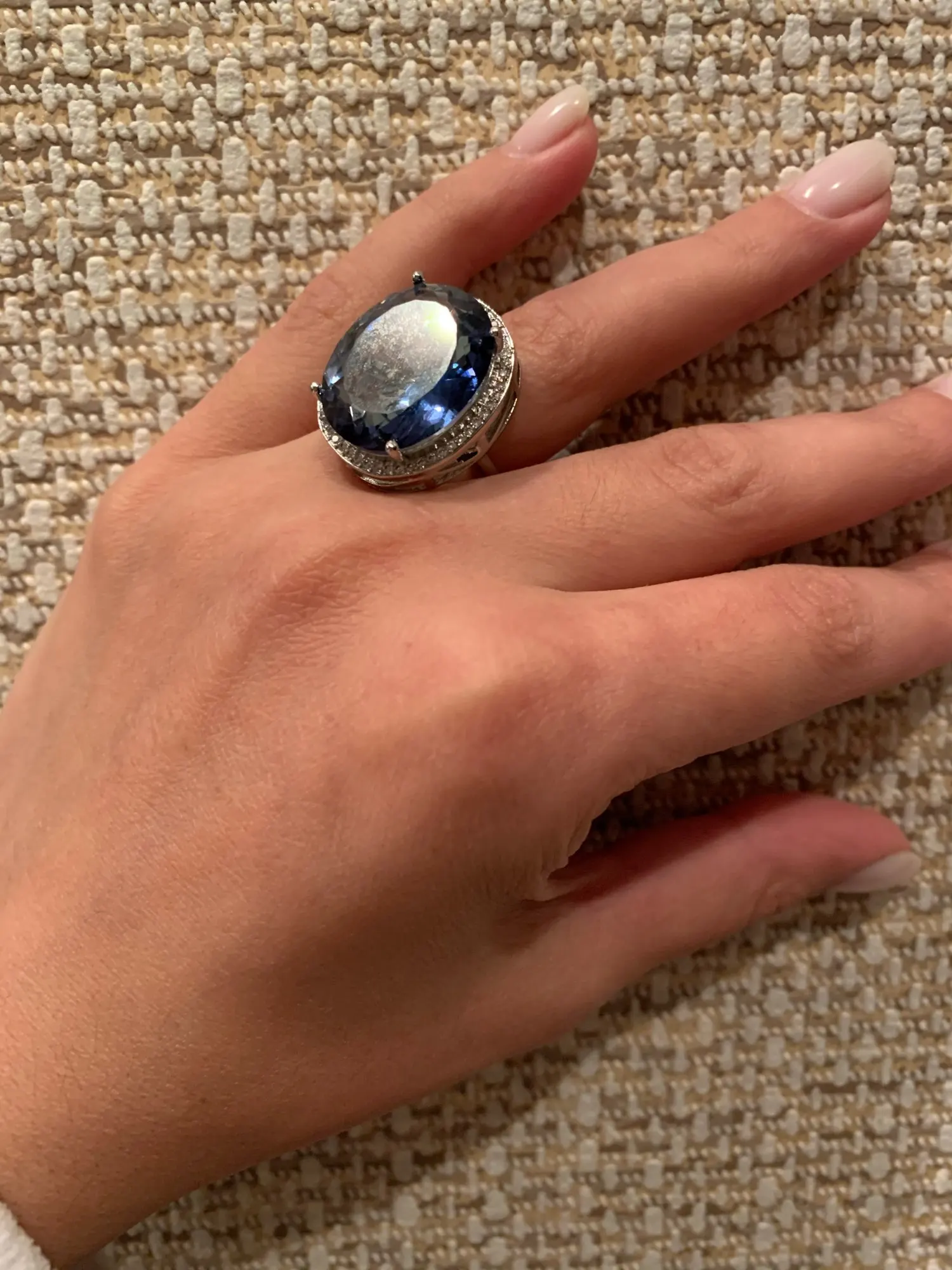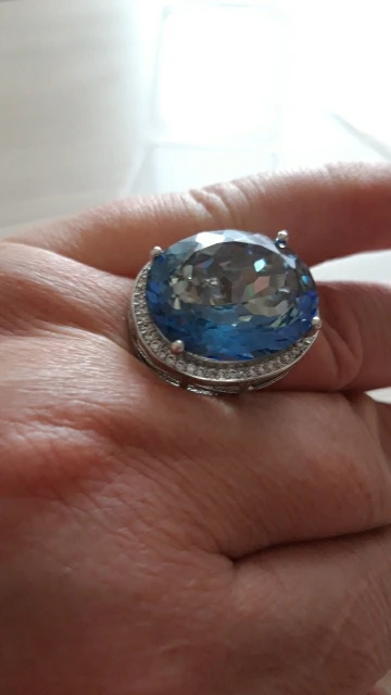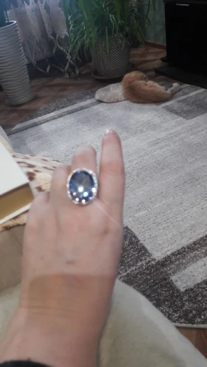 кольцо шикарное! раньше я заказывала кулон и серьги, кольцо мне не попадалось, иначе заказала всё сразу, но когда увидела кольцо, не задумываясь заказала его. это такая красота! огранка камня -супер ювелирная работа! этот камень так сияет, сверкает, что не нужно никаких алмазов! плюс ко всему - изделие крупное, как раз то, что я люблю, доставка две недели, продавцу огромное спасибо за такую работу и за качество товара!