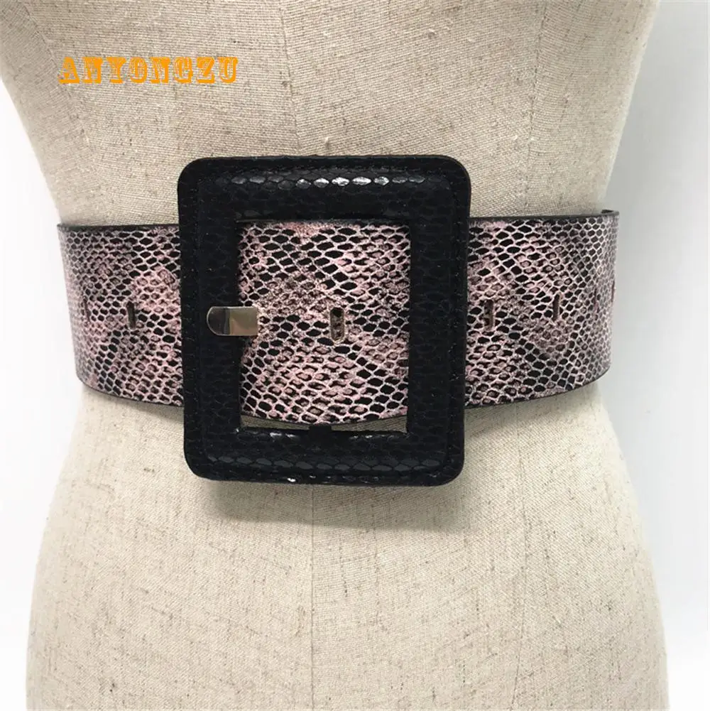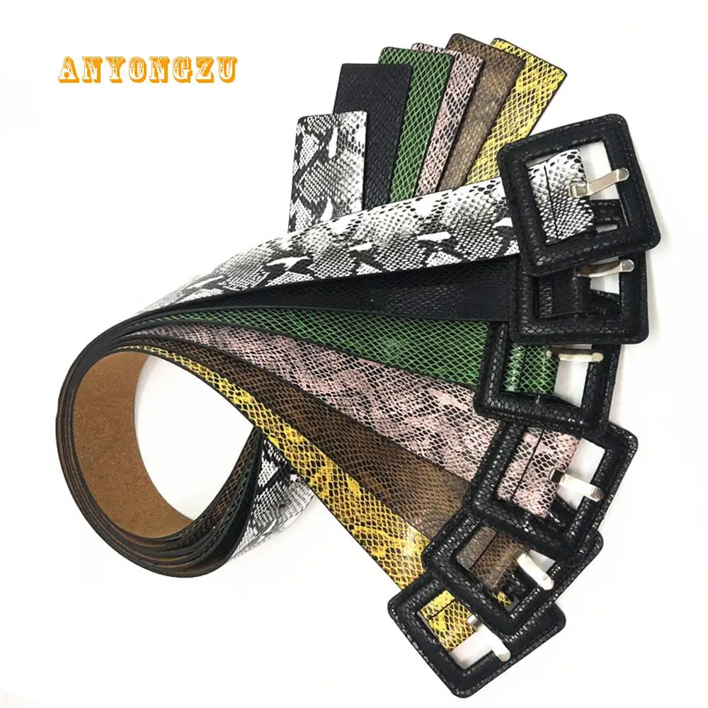 ANYONGZU под змеиную кожу женские широкий пояс с большой квадратной пряжкой осенние зеленый черного, желтого цвета в винтажном стиле; Женская одежда ремни для мужчин и женщин