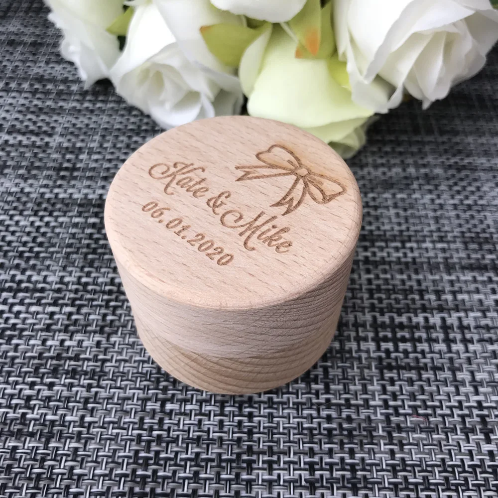 Индивидуальный деревянный держатель обручального кольца в деревенском стиле, Индивидуальная коробка для свадебных колец и даты