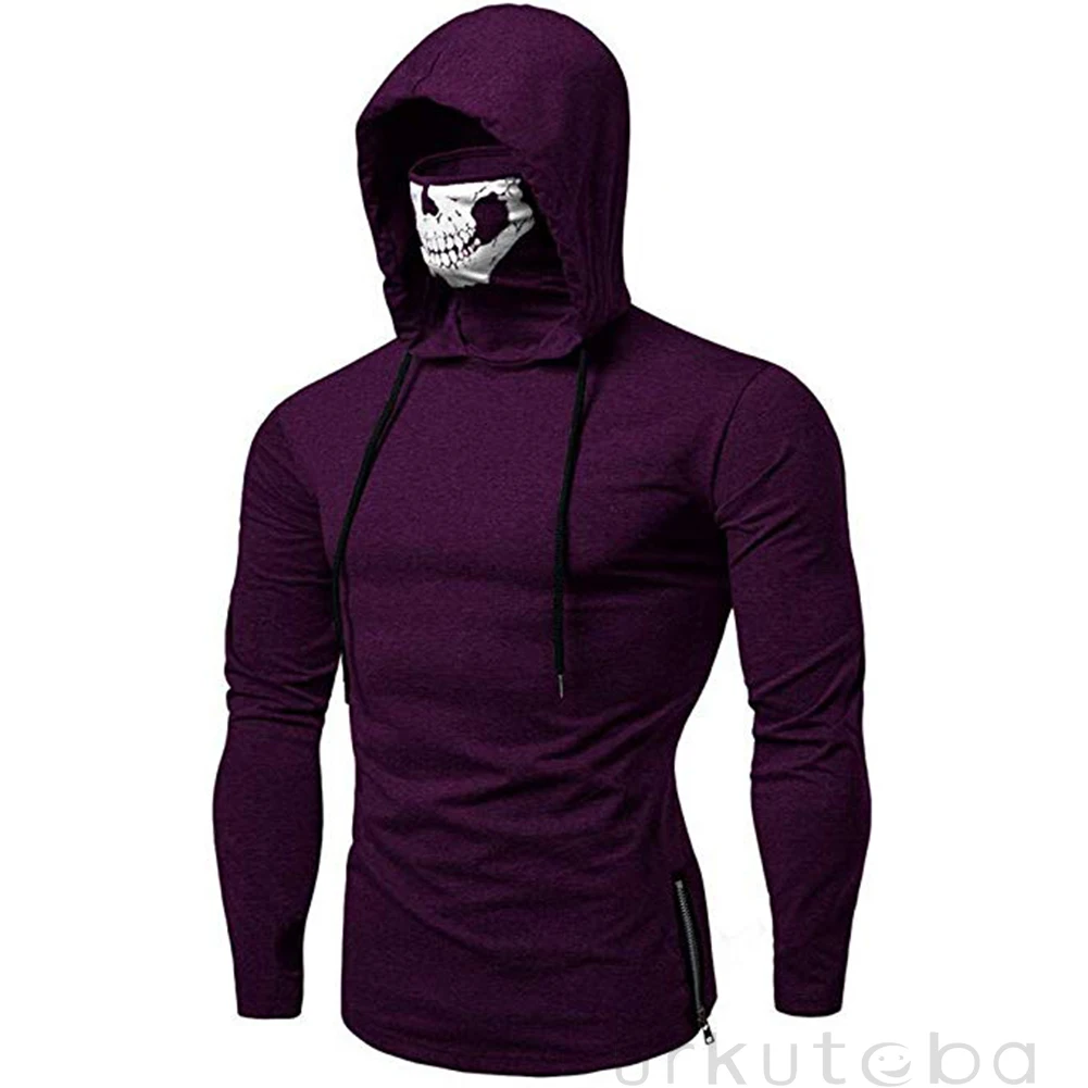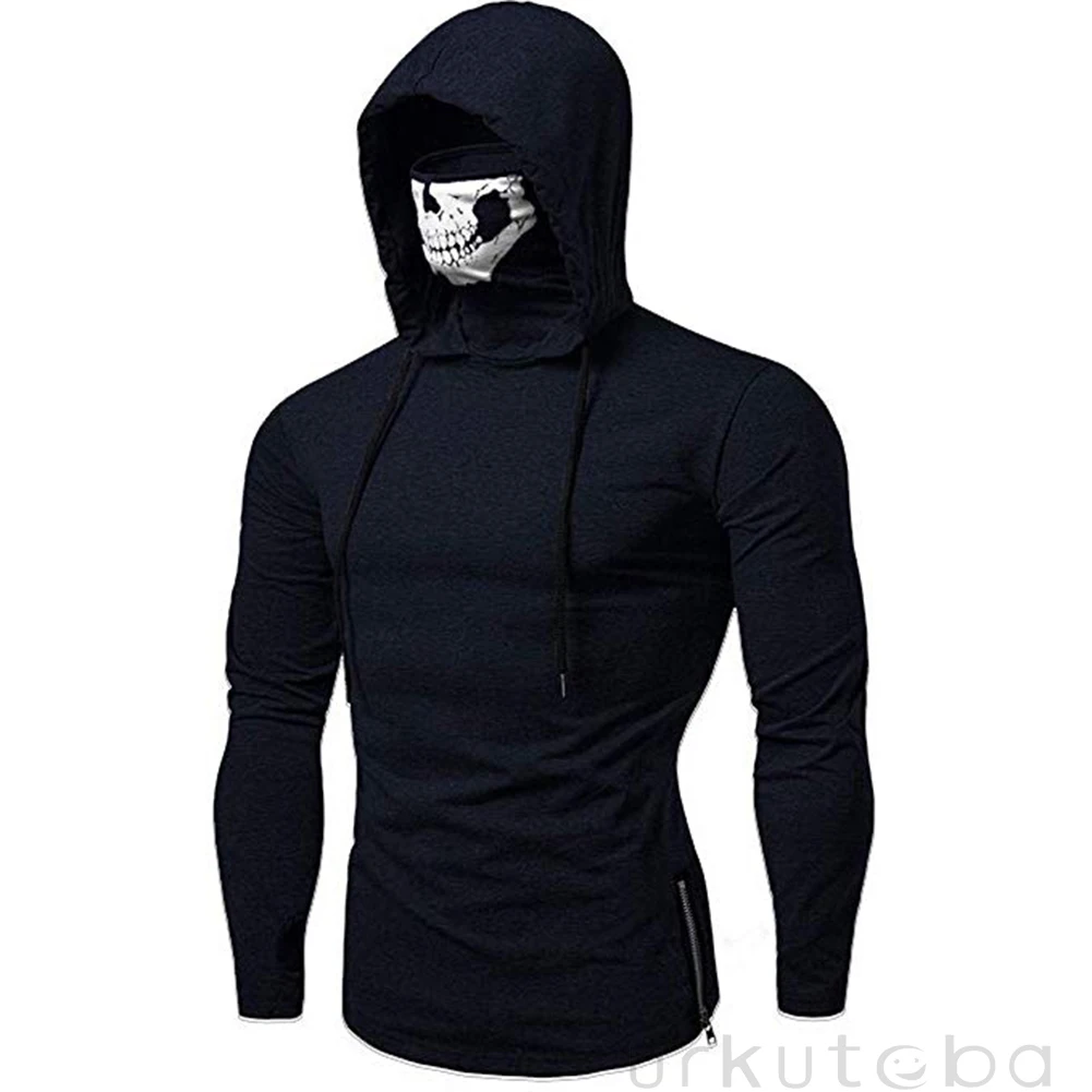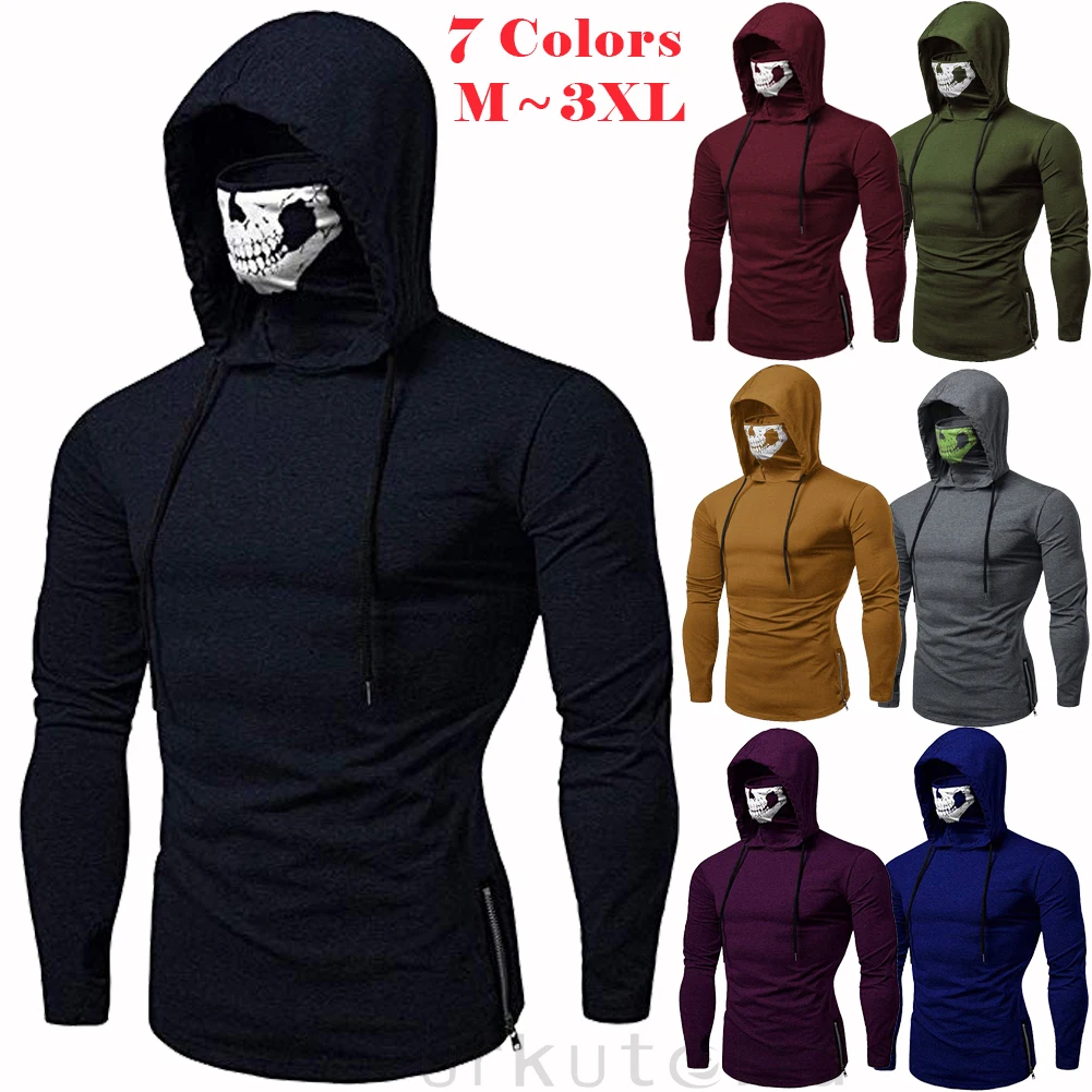 Мужская тонкая толстовка с капюшоном для спортзала, повседневные толстовки с длинным рукавом и маской, свитшот с черепом, топы