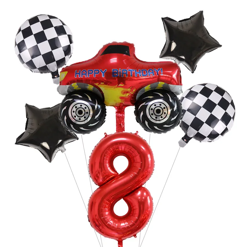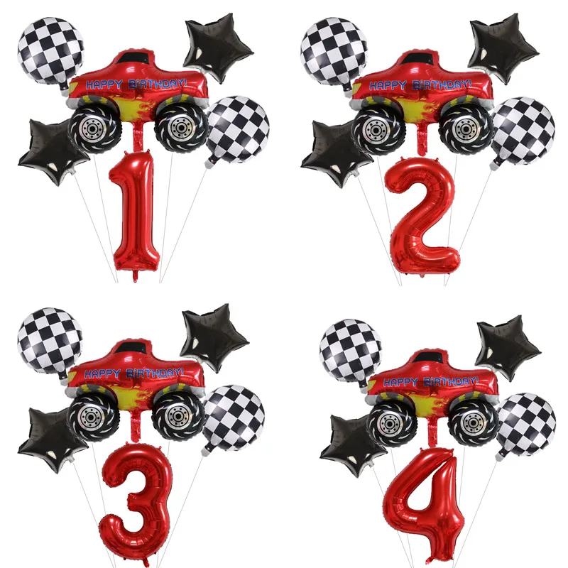 Гоночный автомобиль вечерние украшения вспыш и чудо-машинки, номер воздушные шары на день рождения, комплект вечерние мальчиков сувениры флаги Baby Shower поставки