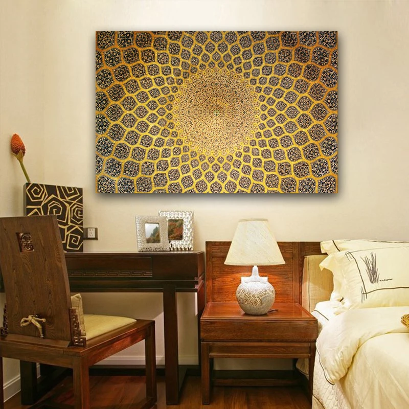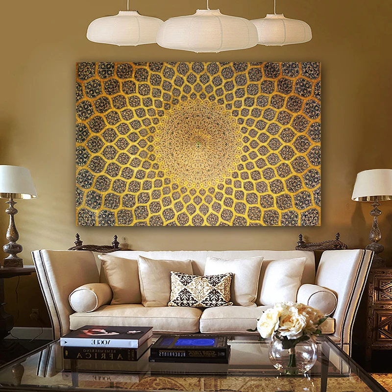 Огромная симметричная картина маслом на потолке в изфахане, лотфолле, мечети, холст, плакаты и принты, настенные картины для гостиной