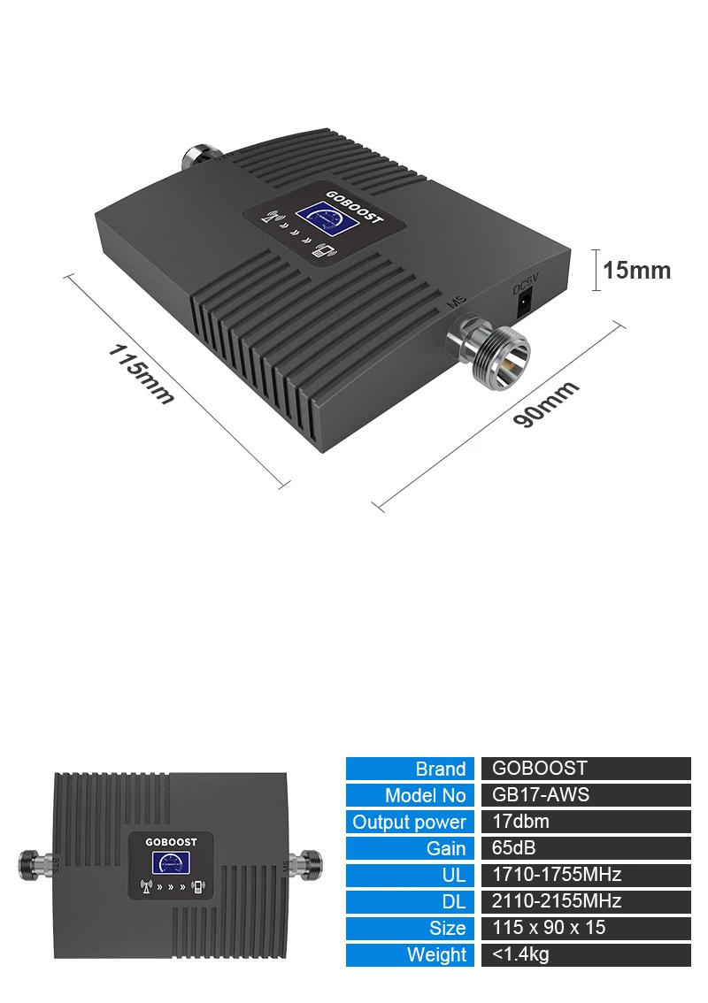 GOBOOST Band 4, однодиапазонный ретранслятор сотовой связи FDD LTE AWS 1700 2100 МГц, усилитель сигнала 65 дБ, Мобильный усилитель сигнала 4g