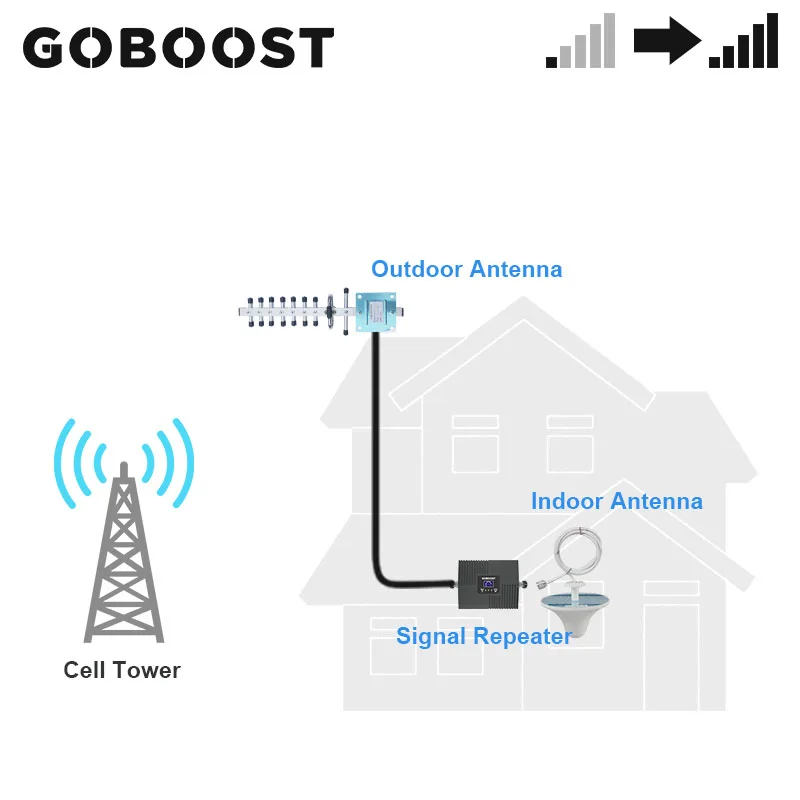 Во-первых:Убедитесь, что вы можете получить как минимум 3 бара сигнала на открытом воздухе (поставить наружную антенну) перед покупкой, в противном случае этот продукт не может вам помочь. Для улучшения сигнала в помещении необходим хороший внешний сигнал.