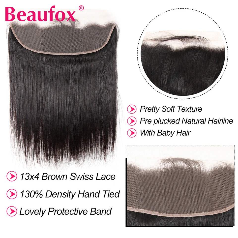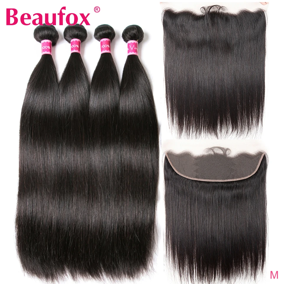 Beaufox прямые пряди волос с фронтальным бразильским человеческие волосы 4 пряди с закрытием Remy кружева фронтальное закрытие с пряди