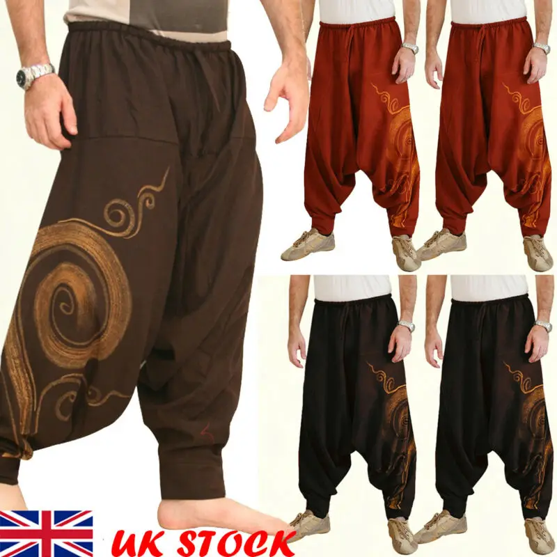 Мужские шаровары с традиционными принтами, винтажные Свободные мешк...