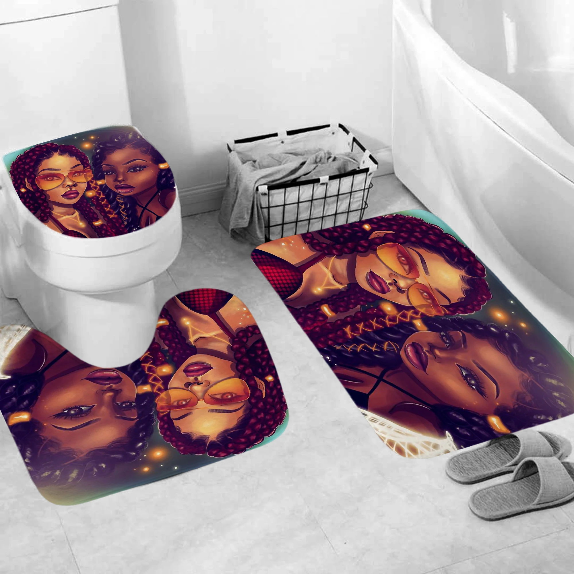 Черная занавеска для ванной, для мамы и дочери, занавеска для душа для женщин, африканского и американского стиля, коврик для унитаза, нескользящий Набор ковриков для ванной