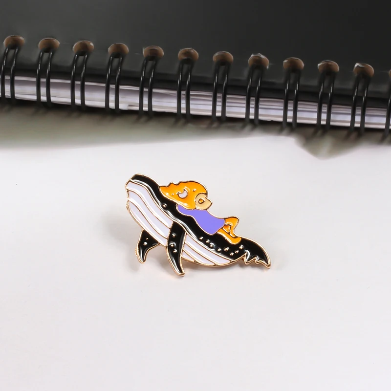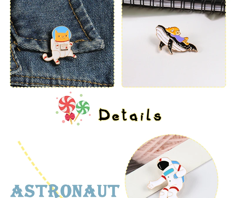 Брошь с эмалью в виде космонавта, ракеты, космоса, динозавра, кошки, Кита, ярлык на рубашке, значок на булавке, смешной значок ювелирное изделие