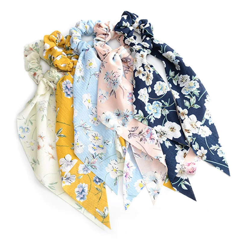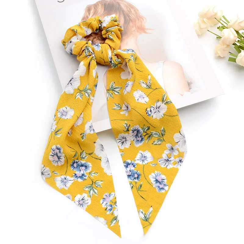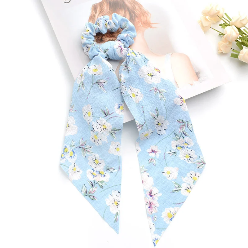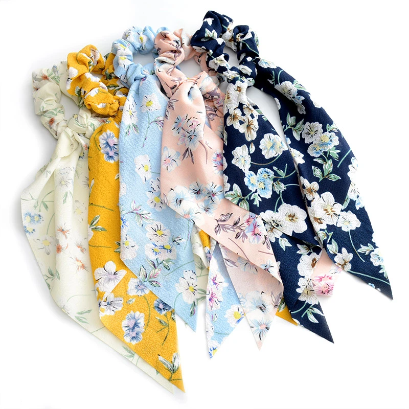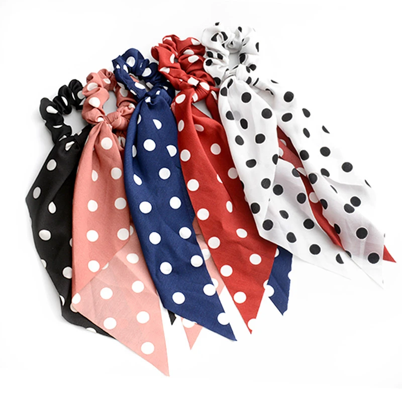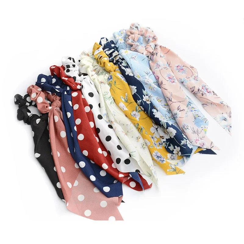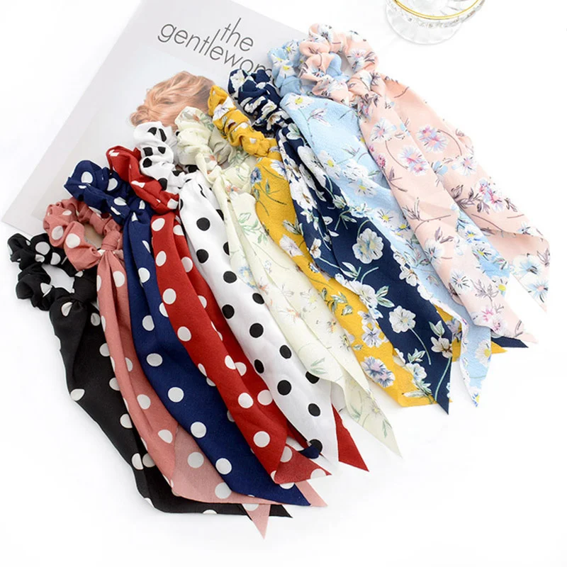 Женский Длинный шарф для волос, эластичная резинка в горошек с цветочным принтом, аксессуар для волос, 12 видов, богемные головные повязки, оптовая продажа 2020