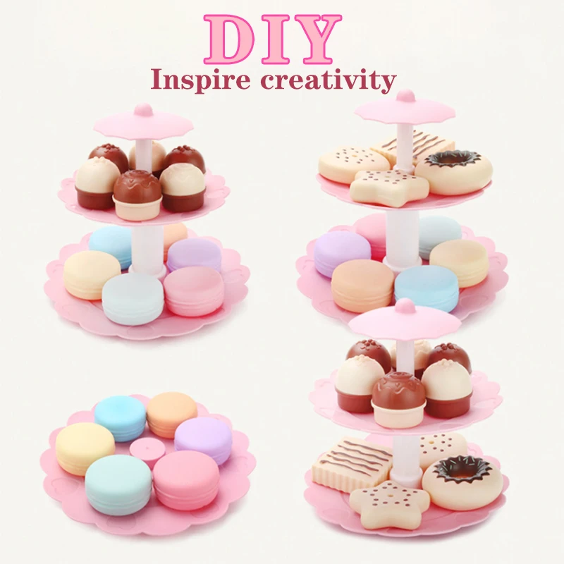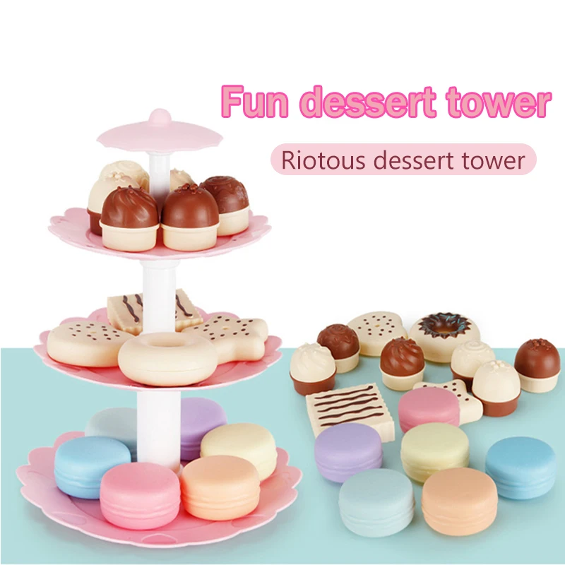 Детский кухонный набор для послеобеденного чая, игрушечный для девочек, десертная башня, миниатюрная имитация еды, обеденная детская игрушка, кухня, мини-торт, печенье