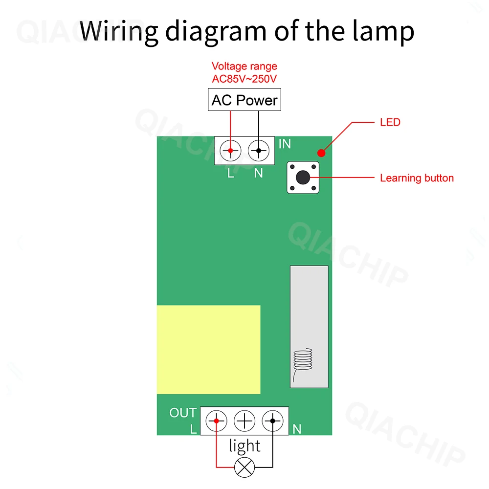 Беспроводной радиочастотный передатчик QIACHIP, 110 в переменного тока, 220 в, 1 канал, 433 мгц, переключатель, беспроводной пульт дистанционного управления, дверной светильник, светодиодный переключатель