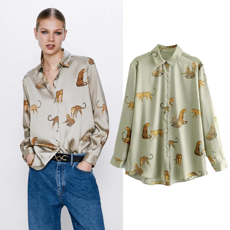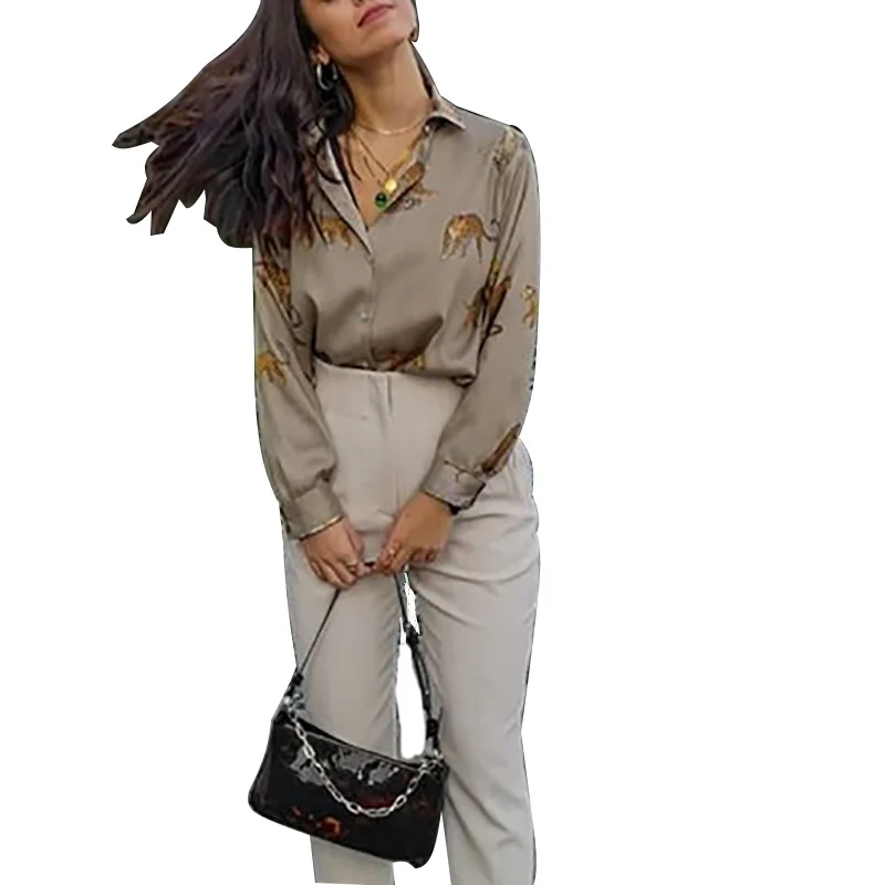 Рубашка женская с принтом животных, весна 2020, новая модная блузка с длинным рукавом, женские свободные рубашки