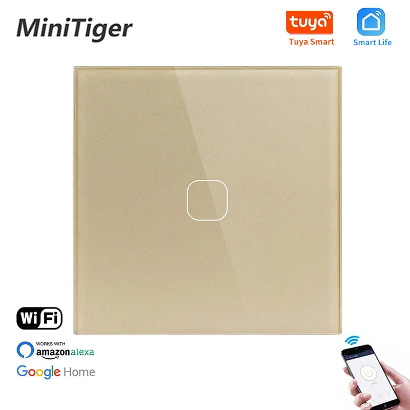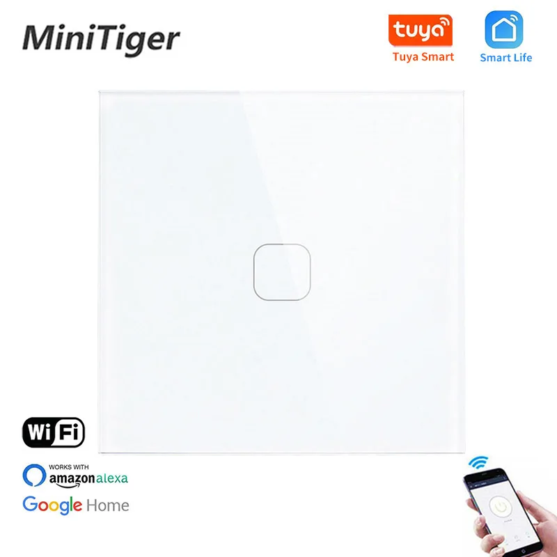 Умный выключатель Minitiger, европейский стандарт, 123 клавиши TuyaSmart Life, Wi-Fi настенный сенсорный выключатель из хрустального стекла, с беспроводным управлением