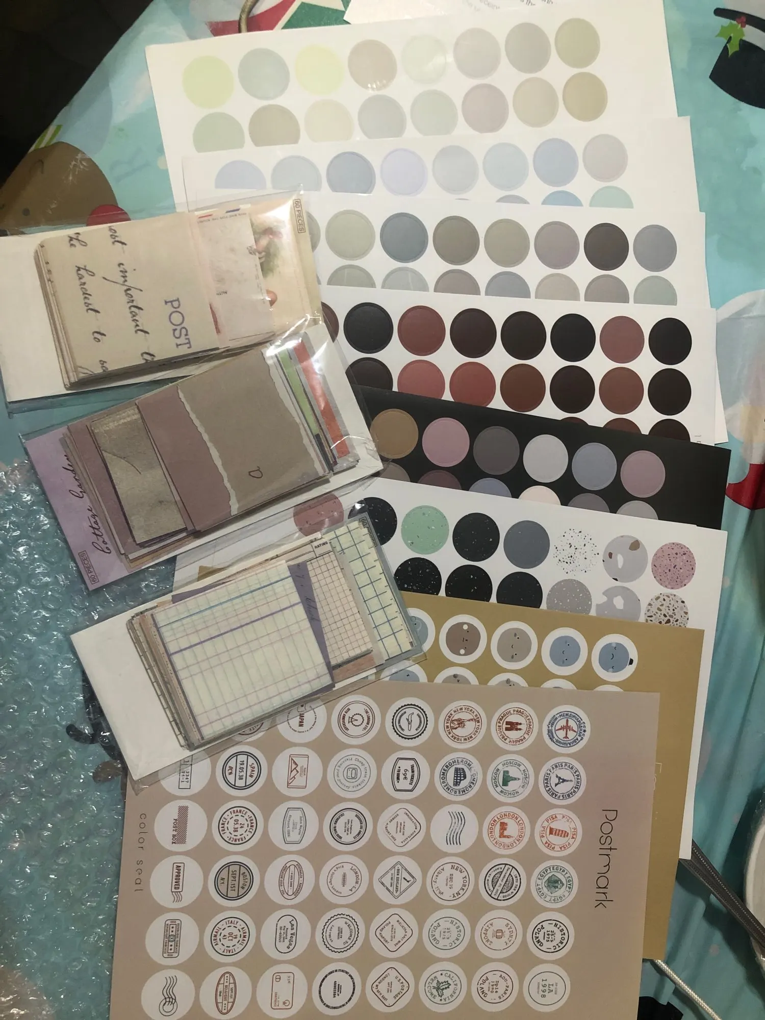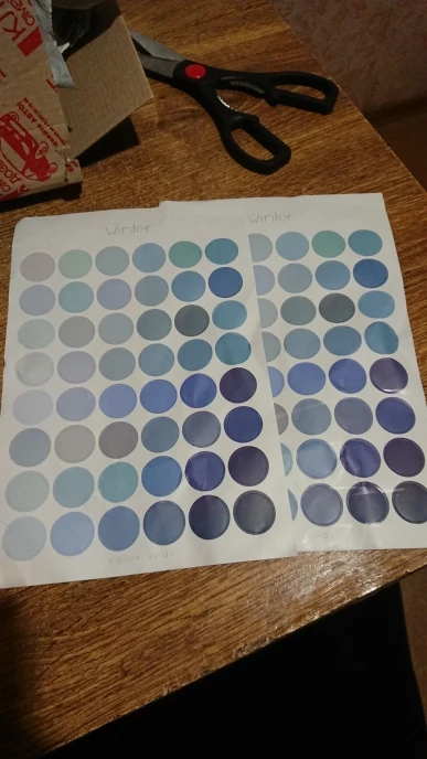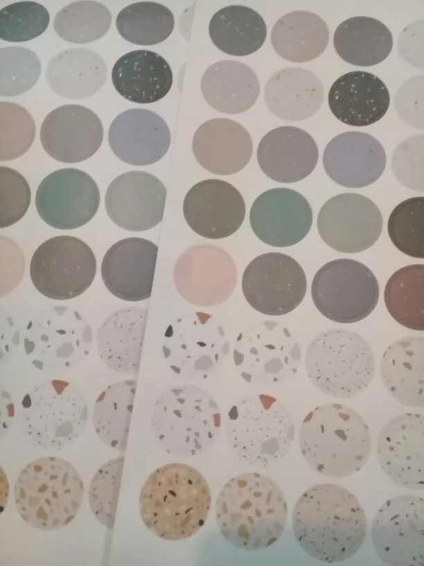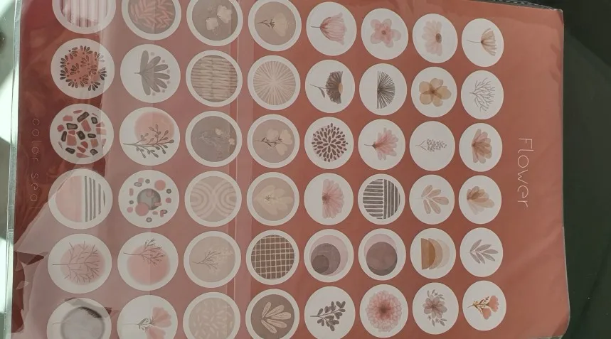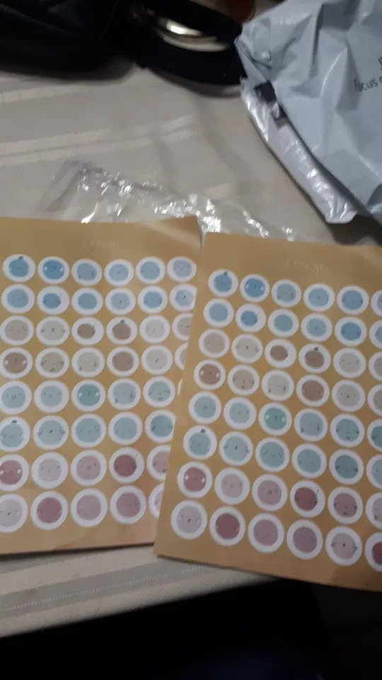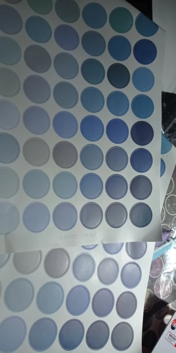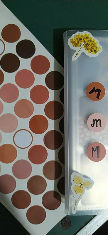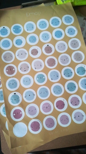 Простые круглые наклейки. Не много сказать о em. Цвета отличные, а лист не очень рифленый.