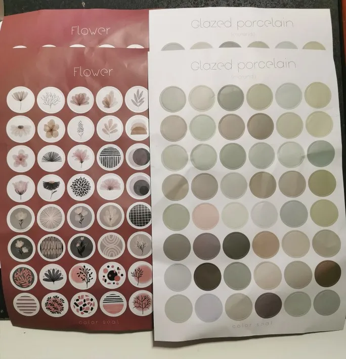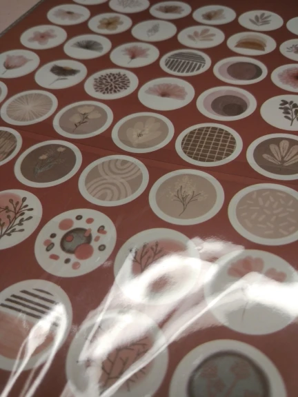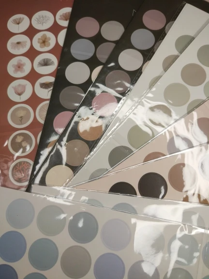 Я люблю круглые наклейки, использую их все время в моем дневнике. Они выглядят очень мило и хорошего качества. Они матовые, если это делает разницу для кого-либо.