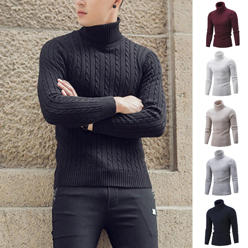 Мужской теплый свитер с высоким воротом, облегающий трикотажный пуловер с длинными рукавами, трикотажный джемпер, зима-весна 2020