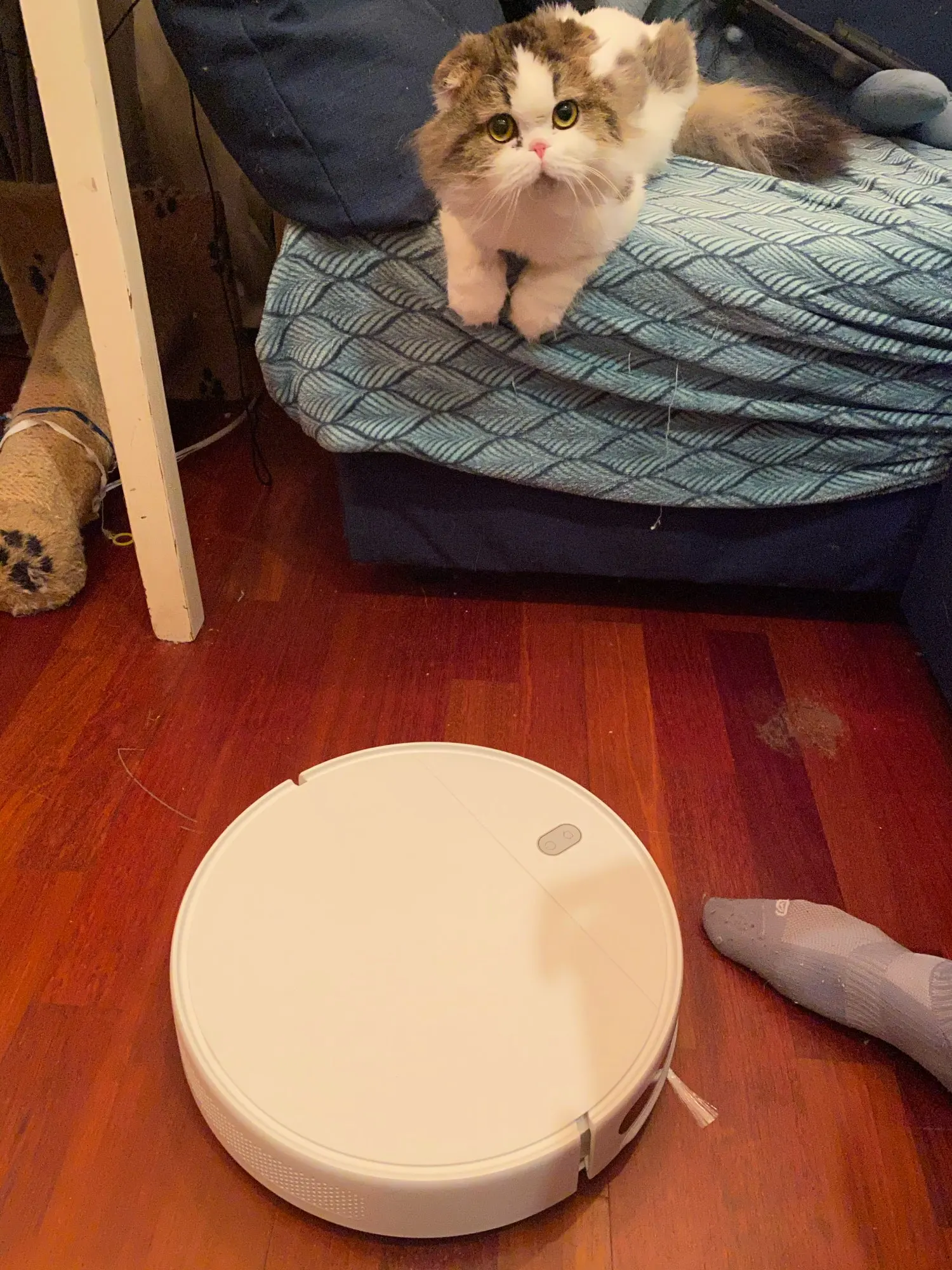 Так ну что ж. Доставили курьером до двери за неделю, у меня упаковка была идеальная, никаких дырок и вмятин. Сам аппарат тоже в идеальном состоянии. Долго не могла подключить в приложении, пришлось делать через поиск в списке. Убирает реально хорошо, у нас везде ламинат - так что засасывает все, и шерсть и крошки и пыль. Влажную уборку не пробовала ещё. Кот в шоке. Аппарат гудит конечно, но не так громко как обычный пылик) один раз стригерился на мат и пошёл убирать хату сам)))