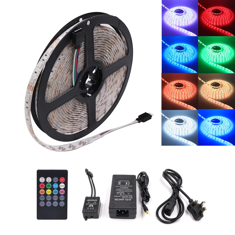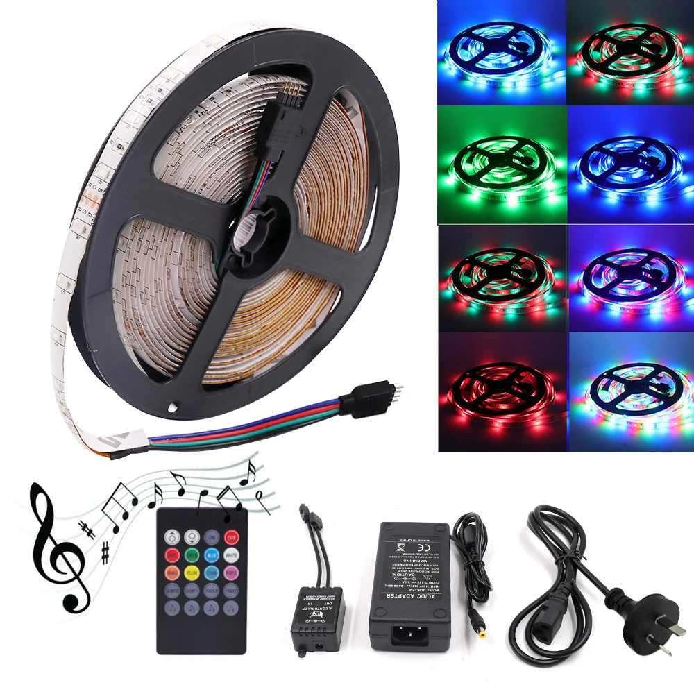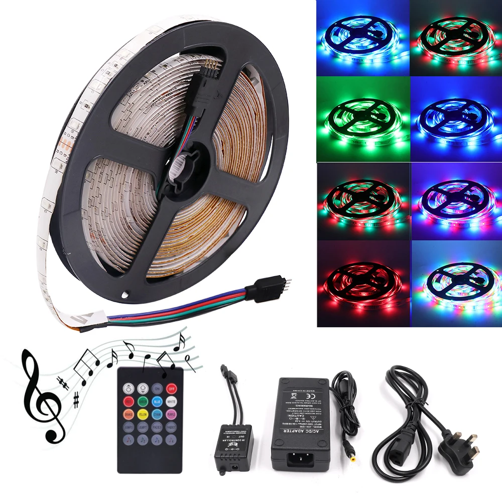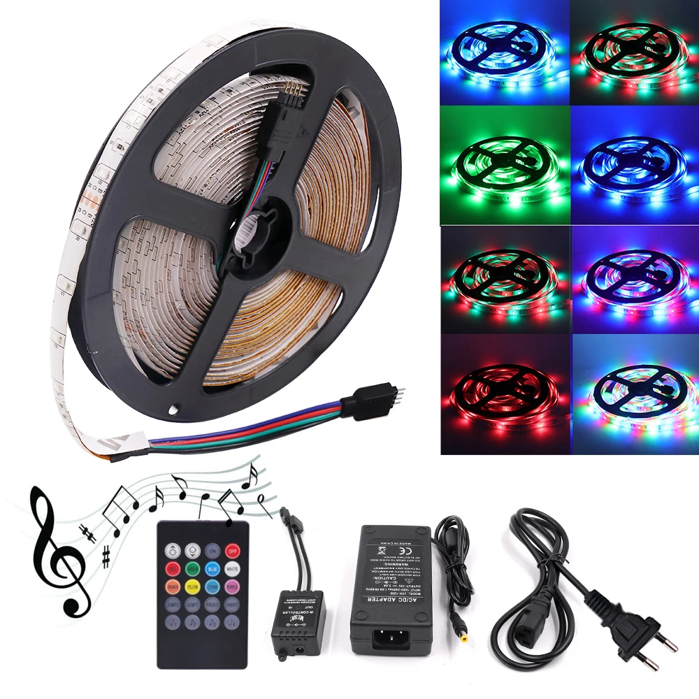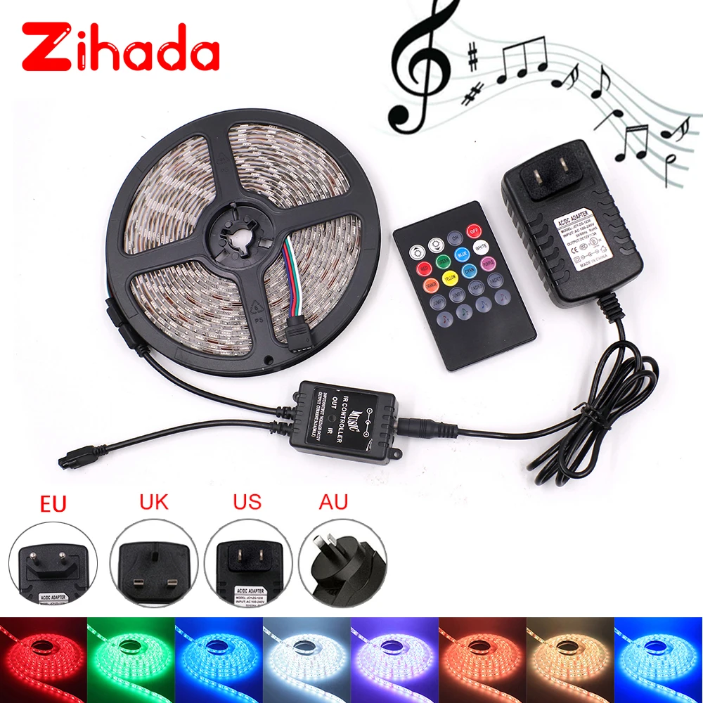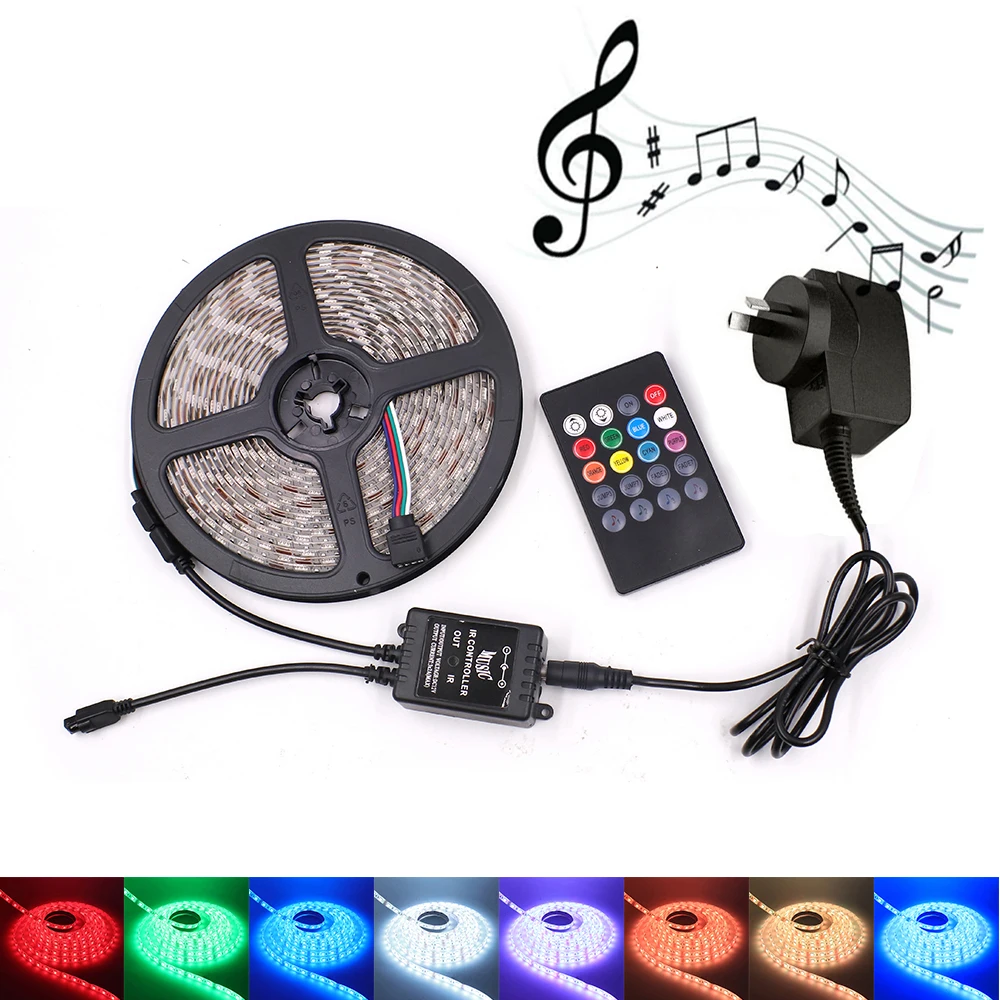 Светодиодная RGB ленсветильник SMD 5050 2835, 60 светодиодовм, 12 В постоянного тока, гибкая Водонепроницаемая светодиодная лента с 20-клавишным ИК-музыкальным контроллером RGB, ЕСВеликобританияСШААвстралия