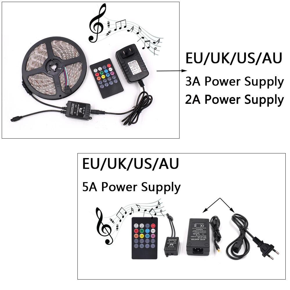 SMD5050 5M/10M набор поставляется с 12V 3A/5A EU/AU/UK/US блоком питания