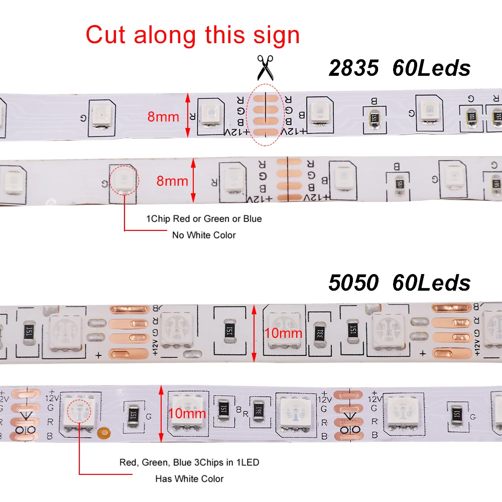 Светодиодный индикатор можно легко отрезать каждые 3 светодиодный s(5050) и 9 светодиодный s(2835) вдоль режущего знака
