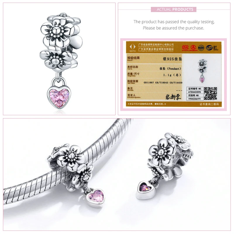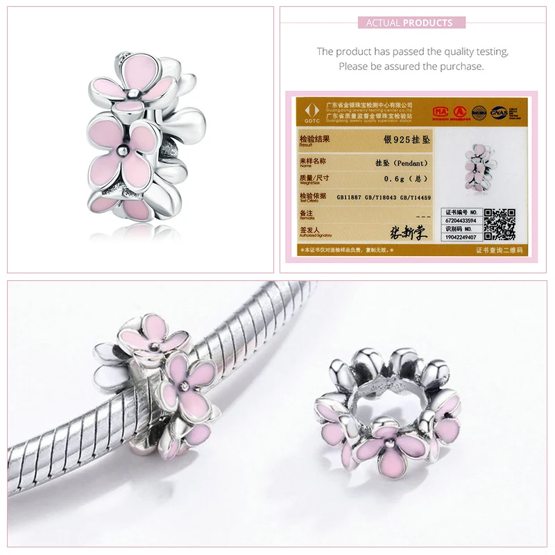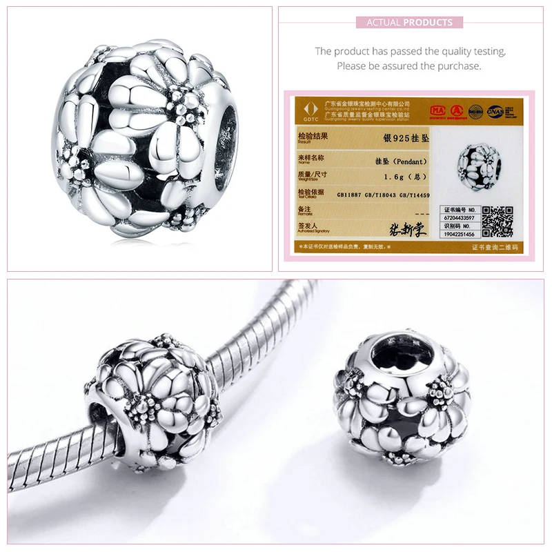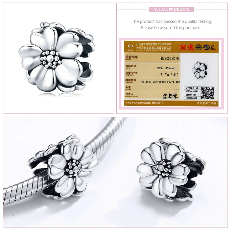 Серебряные бусины bamoer в форме цветка из серебра 925 пробы, оригинальный браслет, аксессуары для ювелирных изделий сделай сам SCC1483