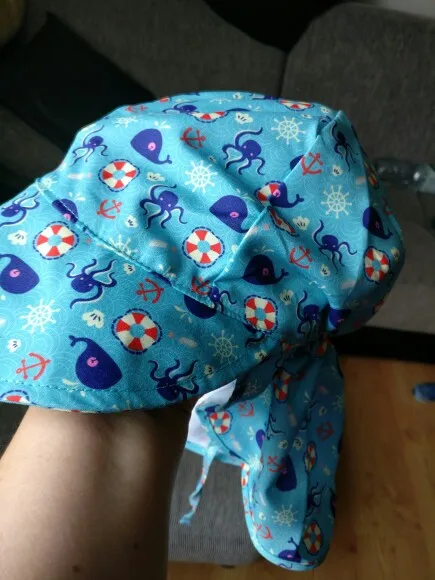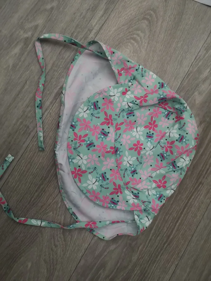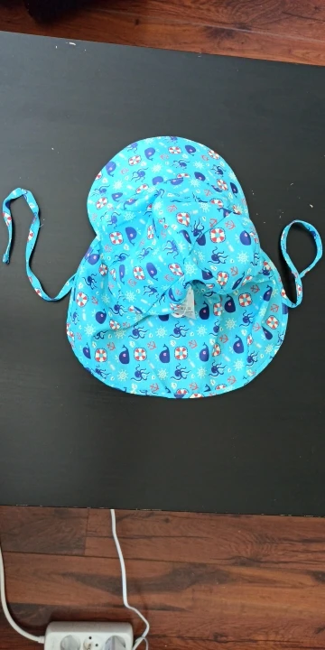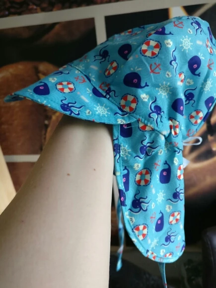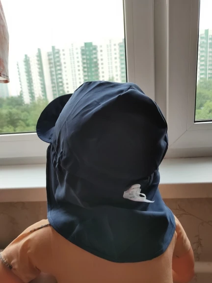 Странное впечатление конечно от покупки. Материал как от купальника, дышать будет или нет не понятно. На малыше ростом 92 с объемом головы 52 прикрыла только шею. Я думала что чуть-чуть на спинку будет спадать, но нет. По голове затягивается тесьмой и завязки тоже нормально держат. Но по моим ощущениям она на возраст лет 10