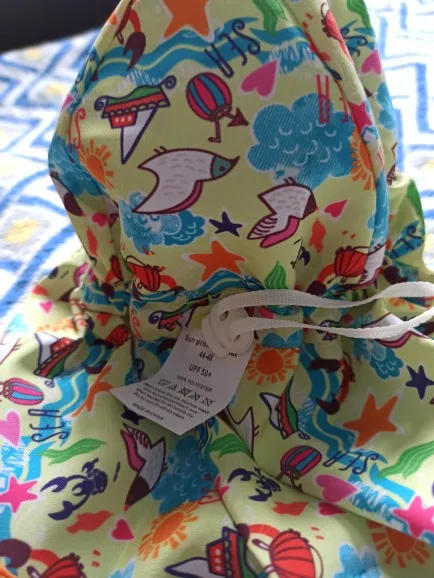 Идеально подходит для бассейна/пляжа... это хорошо, и если вы намочите, он высохнет очень быстро... очень летний и Комбинируемый принт. Его можно хорошо отрегулировать сзади и в восторге! Хорошо покрывает солнце!