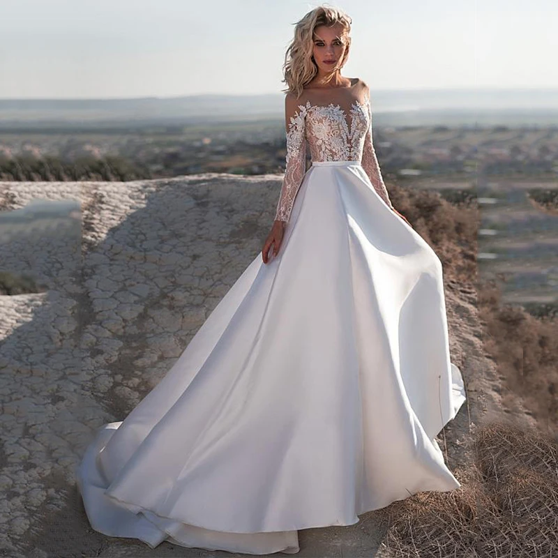 Женское свадебное платье с длинными рукавами, Кружевная аппликация ...