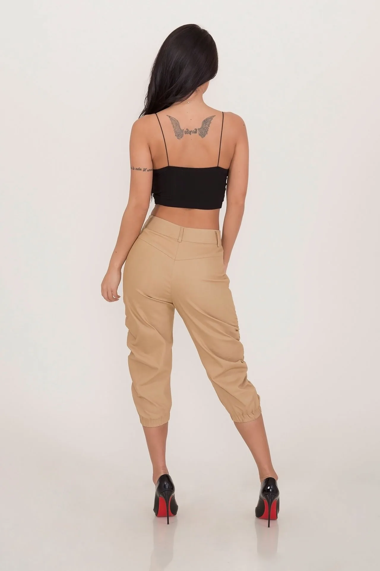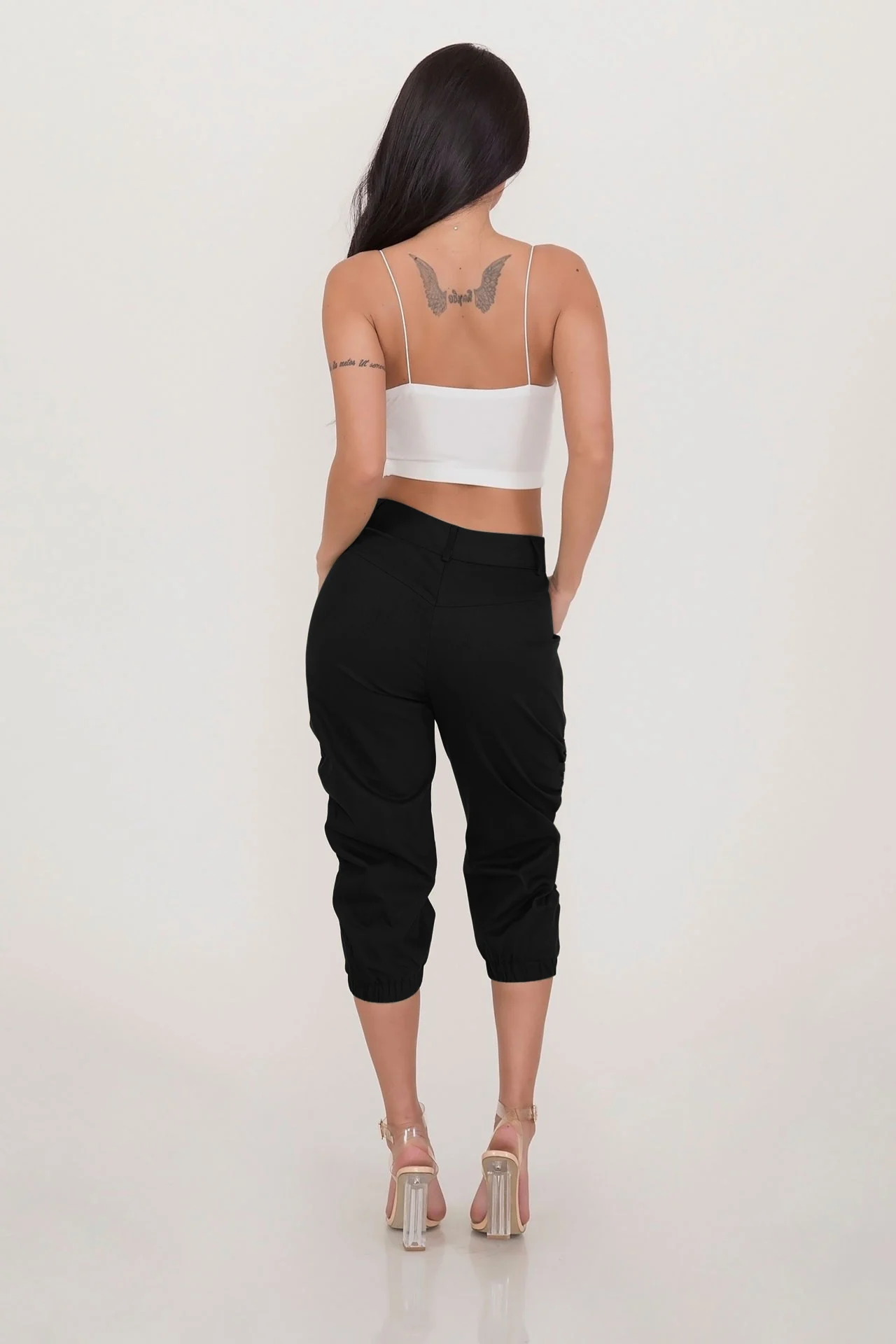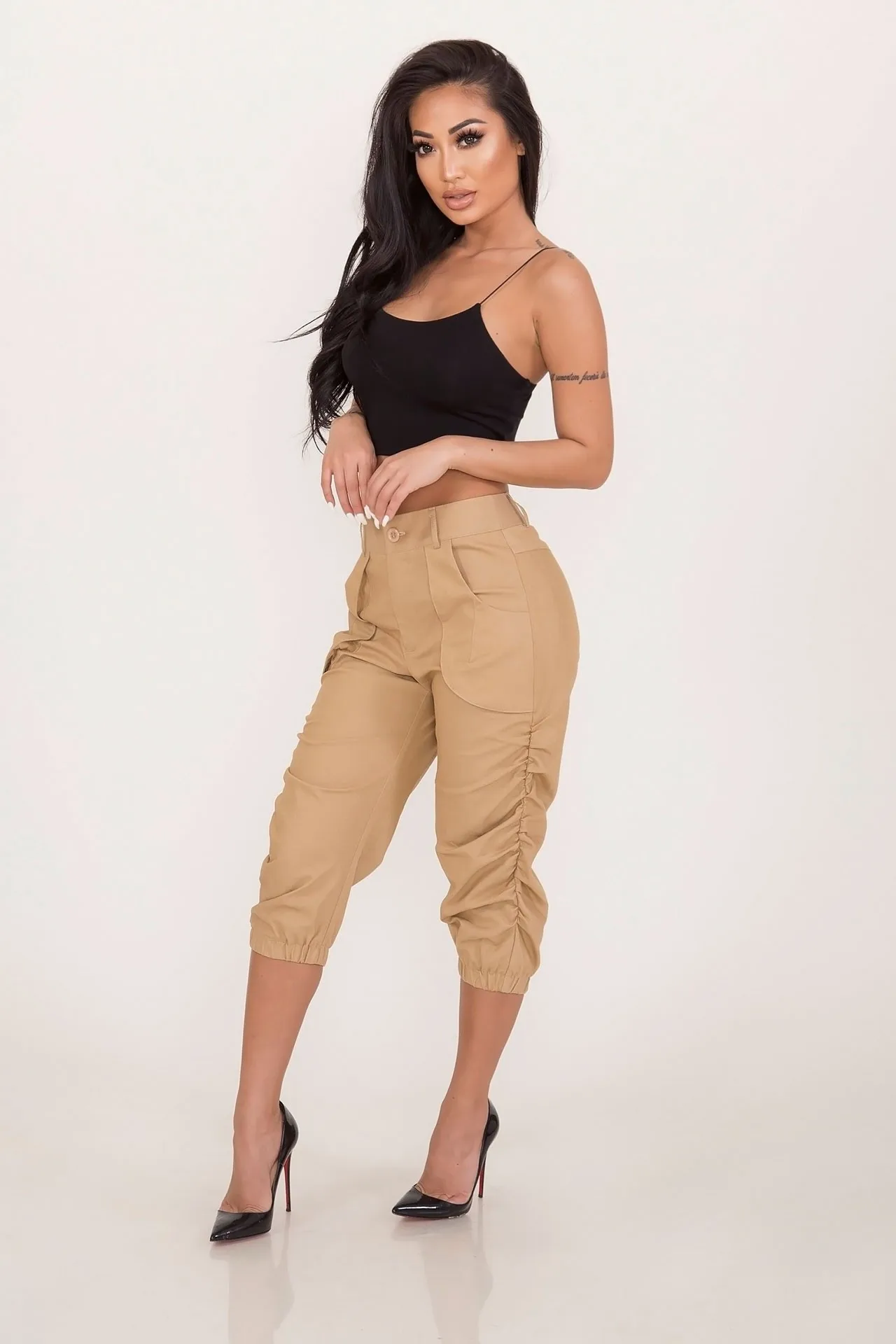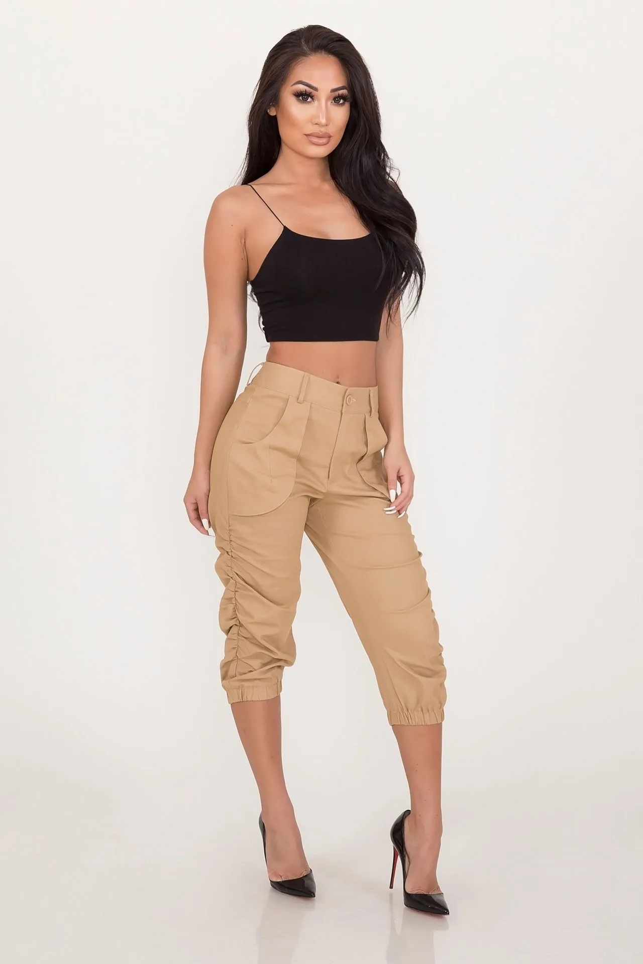Женские Брюки-Капри, свободного кроя, с бумажной сумкой, с высокой талией, укороченные брюки-карандаш, облегающие повседневные брюки, длинные брюки с карманами