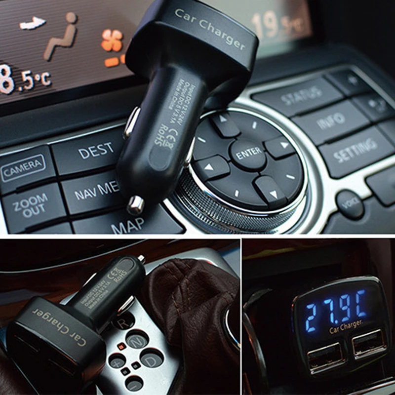 Универсальное автомобильное зарядное устройство 4 в 1 с двумя USB-портами, 5 в постоянного тока, 3,1 А, измеритель напряжения, температуры, тока, адаптер, цифровой светодиодный дисплей