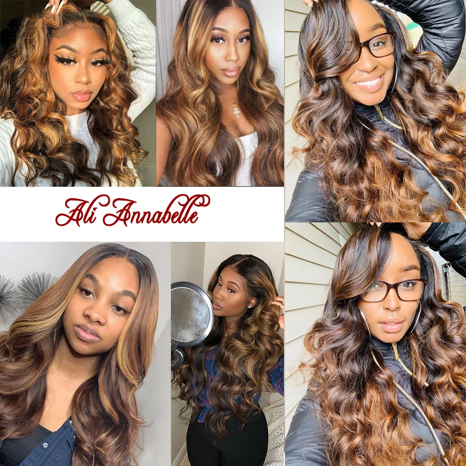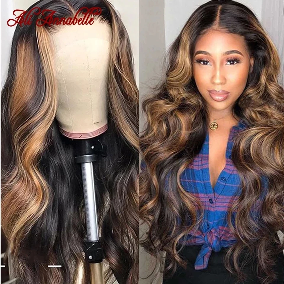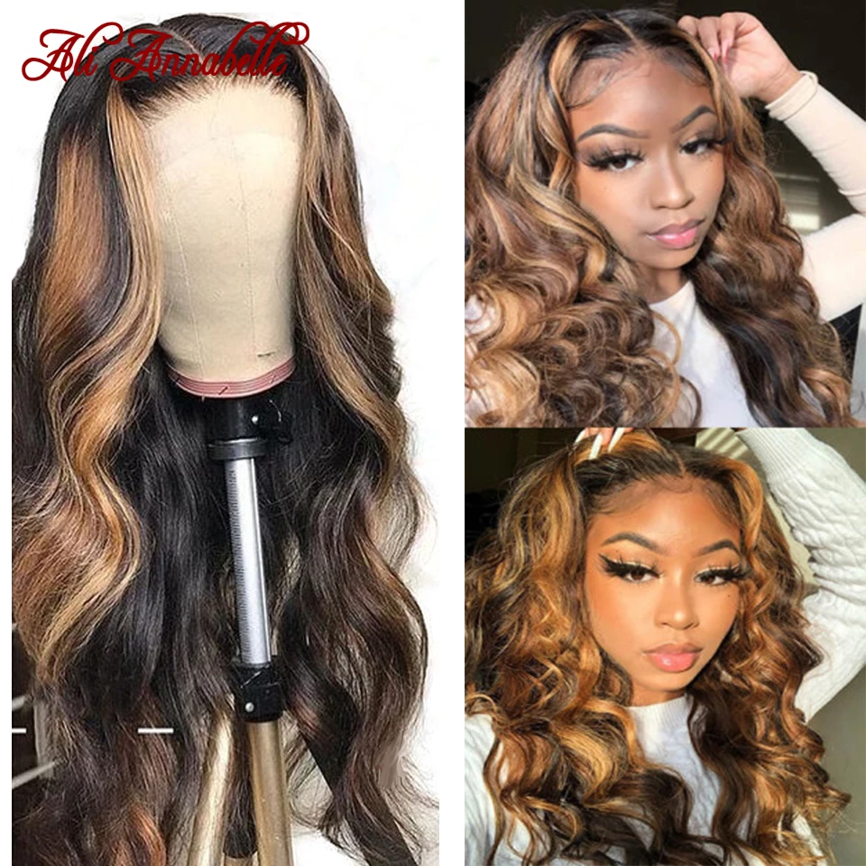 Медовая Блондинка хайлайтер парики Омбре коричневые волнистые человеческие волосы парики Ali Annabelle 4X4 Закрытие 13x4 кружевные фронтальные человеческие волосы парики