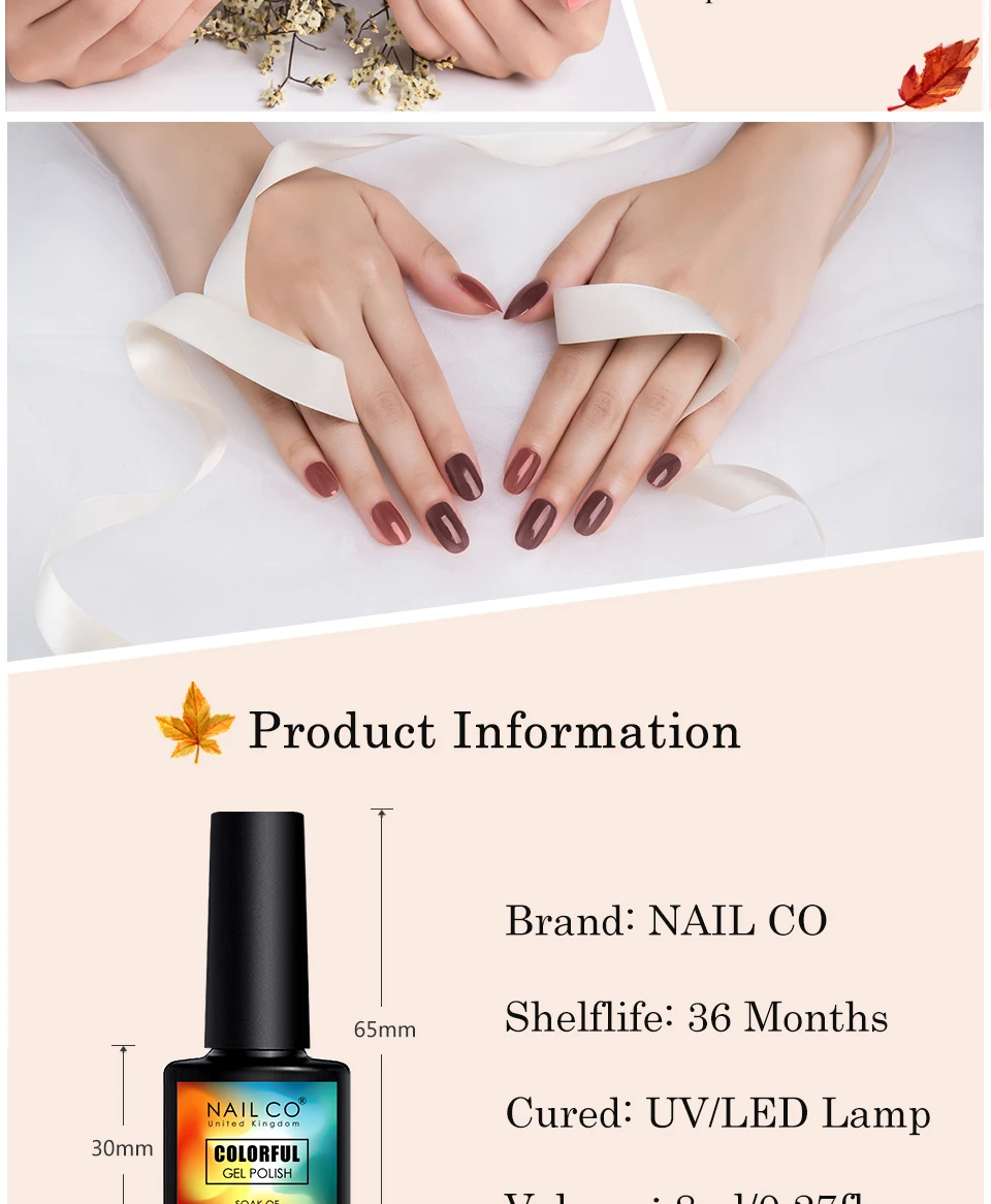 Шаг 1. Очистите ногти, затем обрежьте поверхность ногтей как обычный процесс маникюра.Шаг 2. Полностью встряхните лак, он может сделать цвет полировки сбалансированным. (ВАЖНО)Шаг 3. Сначала нанесите базовый гель, который может сделать лак длительным, вылечите УФ-лампой или светодиодной лампой. (Необходимо)Шаг 4. нанесите лак напрямую, вылечите УФ-лампой в течение 2-3 минут или вылечите светодиодной лампой в течение 60 секунд; при сушке нанесите второй слой и снова закрепите УФ-лампой или светодиодной лампой.Шаг 5. Пальто со съемным верхним покрытием, которое может сделать цвет более блестящим, излечивается УФ-лампой или светодиодной лампой.